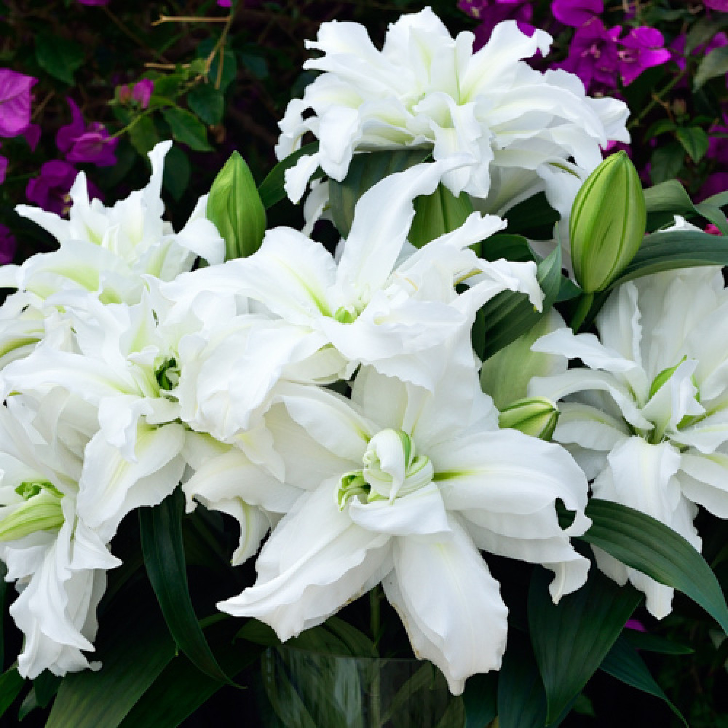 🌸 Лілія Roselily Aisha — розкішний махровий сорт орієнтальних лілій без пилку, який ідеально підходить для саду та зрізання. Ця лілія підкорює своєю елегантністю, чистотою кольору та витонченим ароматом, не викликаючи алергічних реакцій завдяки відсутності пилку.