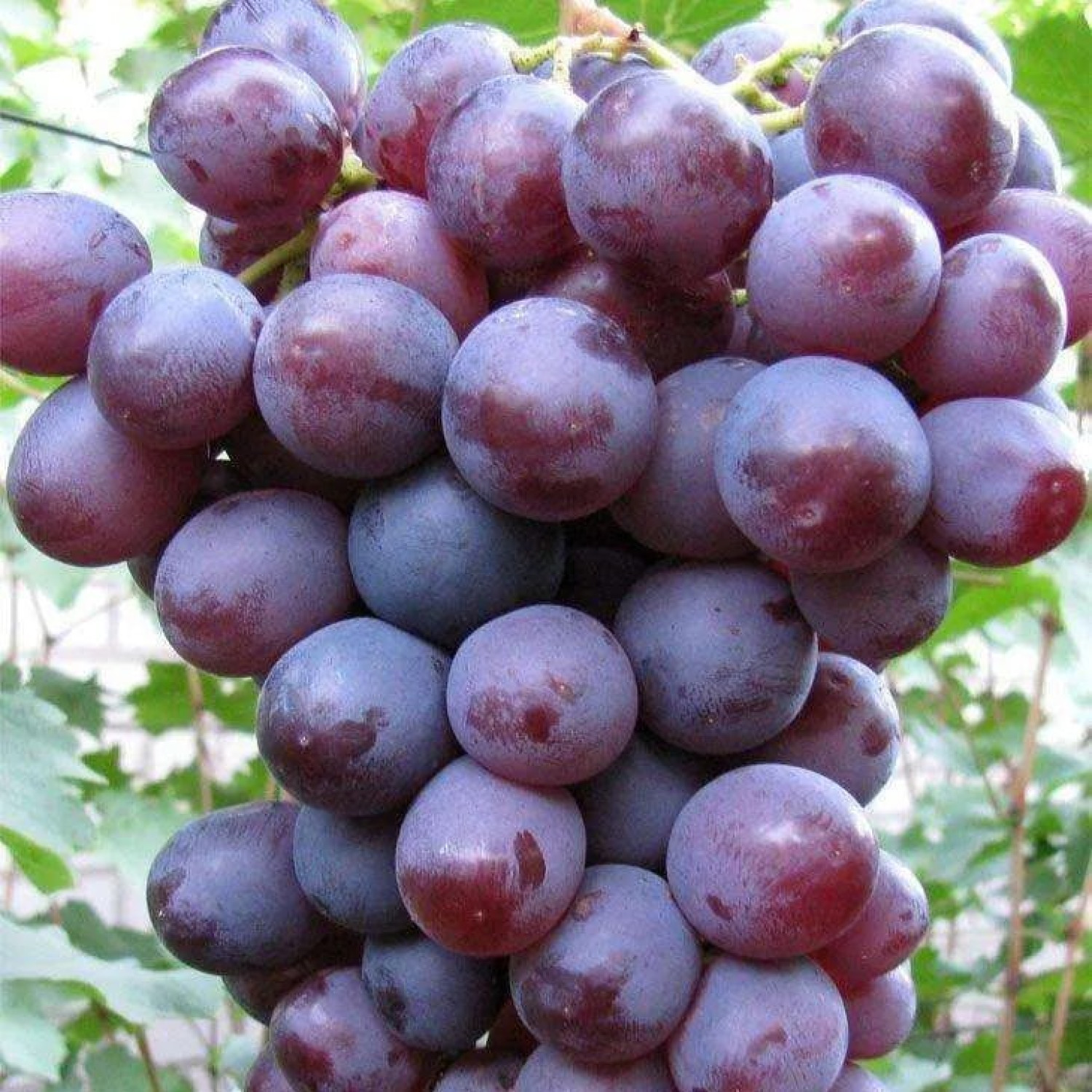 🍇Виноград Нізіна — це високоврожайна столова гібридна форма ранньо-середнього терміну дозрівання (125–130 днів), отримана відомим селекціонером Н.В. Крайновим. Сорт вражає своїми великими циліндро-конічними гронами, середня вага яких становить 600–900 грамів, проте при гарному догляді вони нерідко сягають 1,5–2 кілограмів. Ягоди дуже великі, масою 12–15 грамів, мають привабливий червоно-фіолетовий колір та овальну форму.