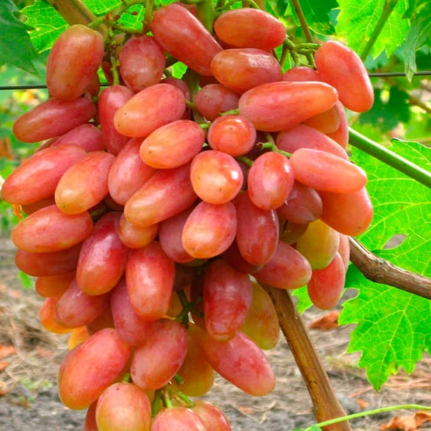🍇Виноград Преображення — це одна з найпопулярніших столових гібридних форм раннього терміну дозрівання. Сорт вражає своїми гігантськими гронами конічної форми, вага яких у середньому становить 700–1500 грамів, а окремі екземпляри можуть досягати рекордних 2,5–3 кілограмів. Ягоди надзвичайно великі, подовжено-овальні, масою 12–18 грамів, мають ніжний рожевий колір із жовтуватим відтінком при повному дозріванні.
