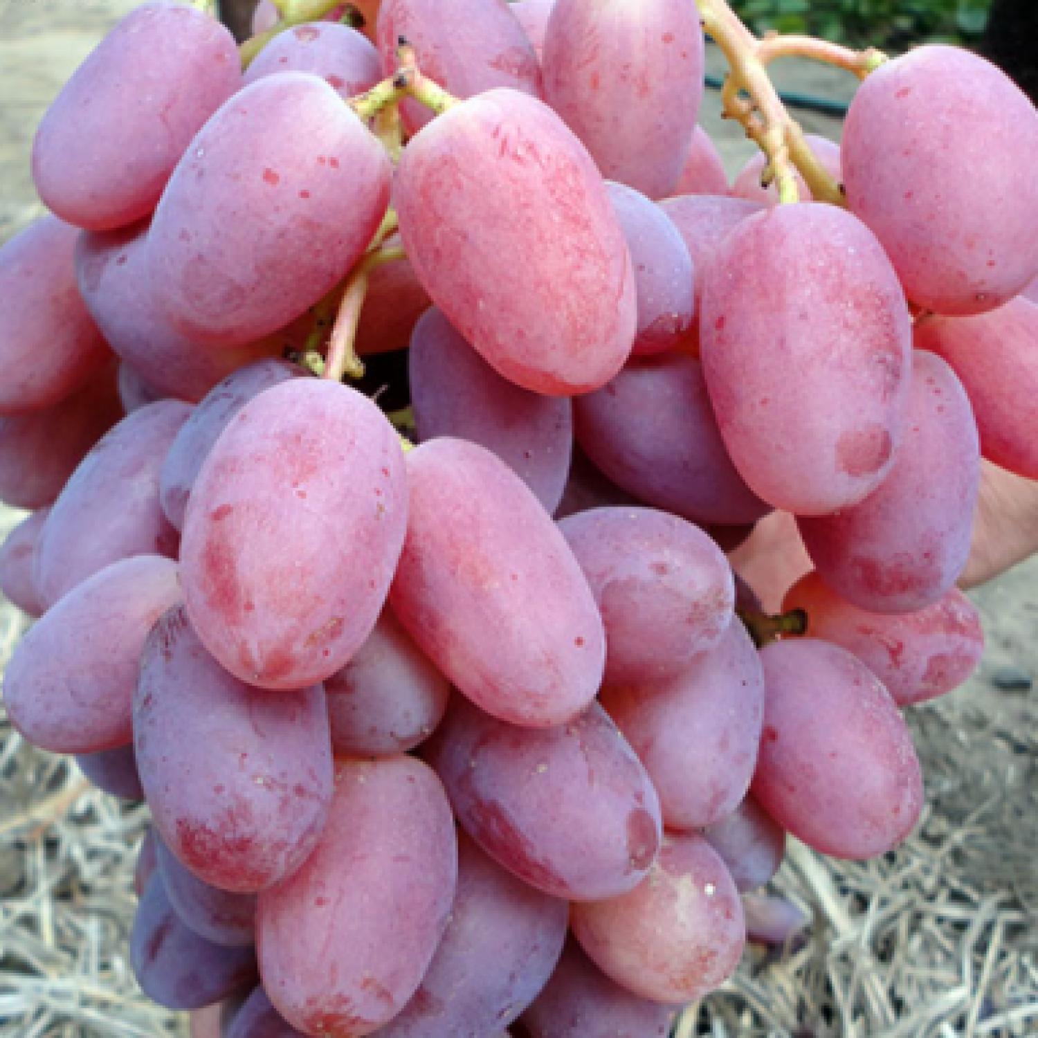 🍇Виноград Віктор — це високоврожайна столова гібридна форма дуже раннього терміну дозрівання (100–110 днів), що належить до знаменитої «трійки» селекції В.М. Крайнова. Сорт вирізняється надзвичайно великими гронами середньої щільності, вага яких зазвичай становить від 700 до 1500 грамів. Ягоди дуже великі, масою 12–18 грамів, мають подовжено-овальну форму з трохи загостреним кінчиком та привабливий колір від рожевого до темно-червоного при повному дозріванні.