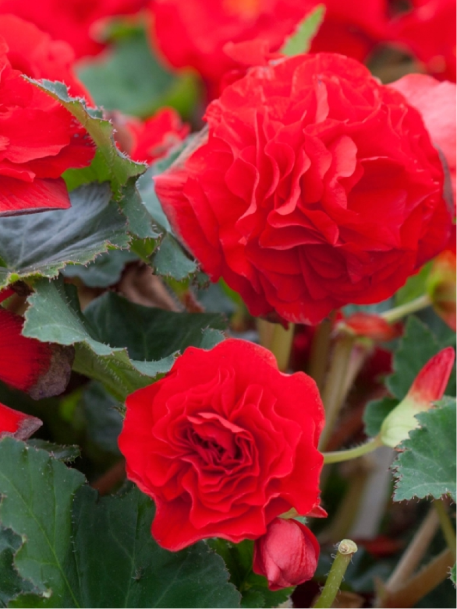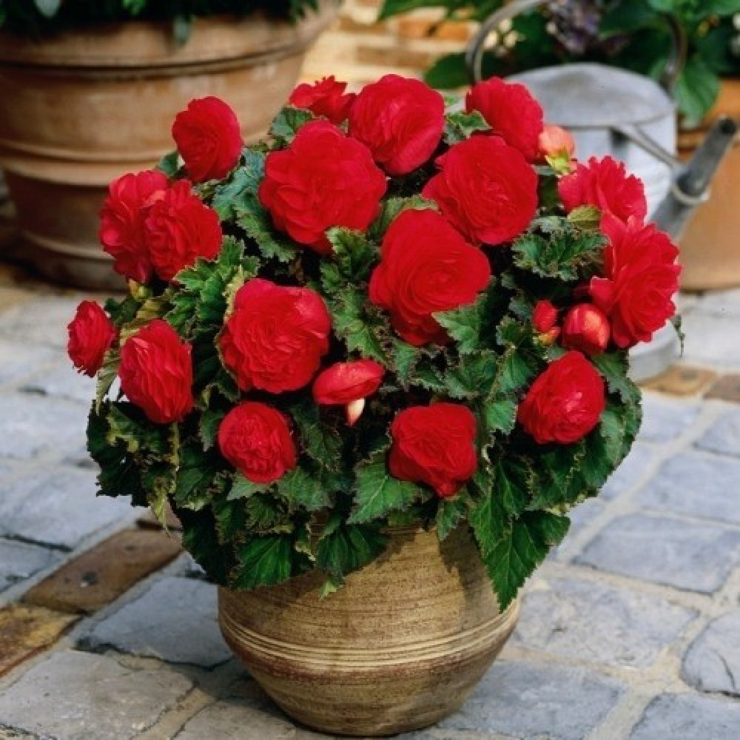 🌺  Бегония Non Stop Red — декоративный сорт клубневой бегонии из популярной серии Non Stop, отличающийся непрерывным и обильным цветением. Цветки крупные, густомахровые, насыщенного красного цвета, очень выразительные и декоративные. Ярко-зелёная листва подчёркивает глубину окраски цветков. Сорт подходит для выращивания в открытом грунте, контейнерах, вазонах и на балконах. Цветёт с начала лета до осенних заморозков.