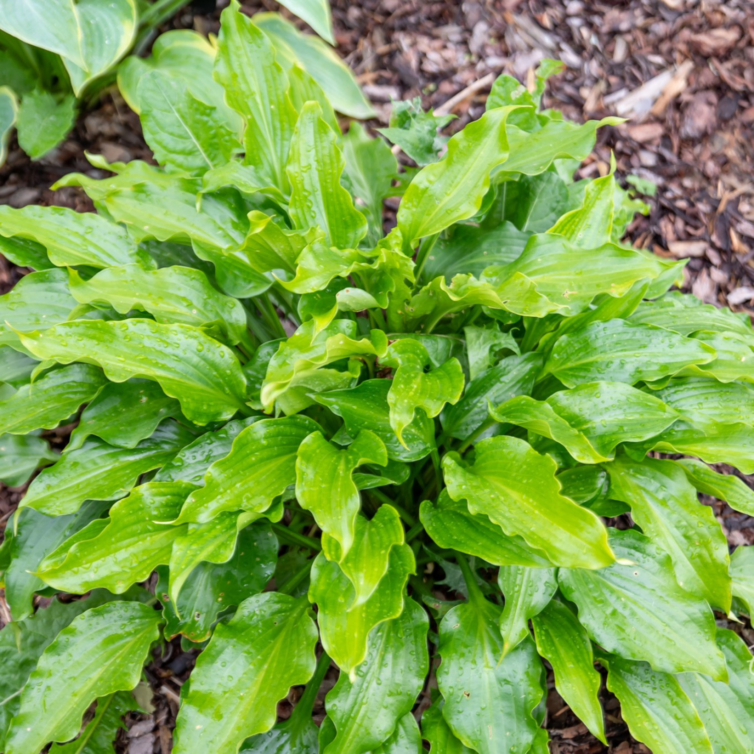 🍃 Хоста Get Nekkid — утонченное и необычное украшение для вашего сада, которое притягивает взгляды своей уникальной формой! Главной особенностью сорта являются продолговатые, узкие листья с сильно волнистыми краями, напоминающими языки пламени или морские волны. Насыщенный зеленый цвет листвы с глянцевым блеском придает растению особый лоск, делая его заметным даже в самых темных уголках сада.