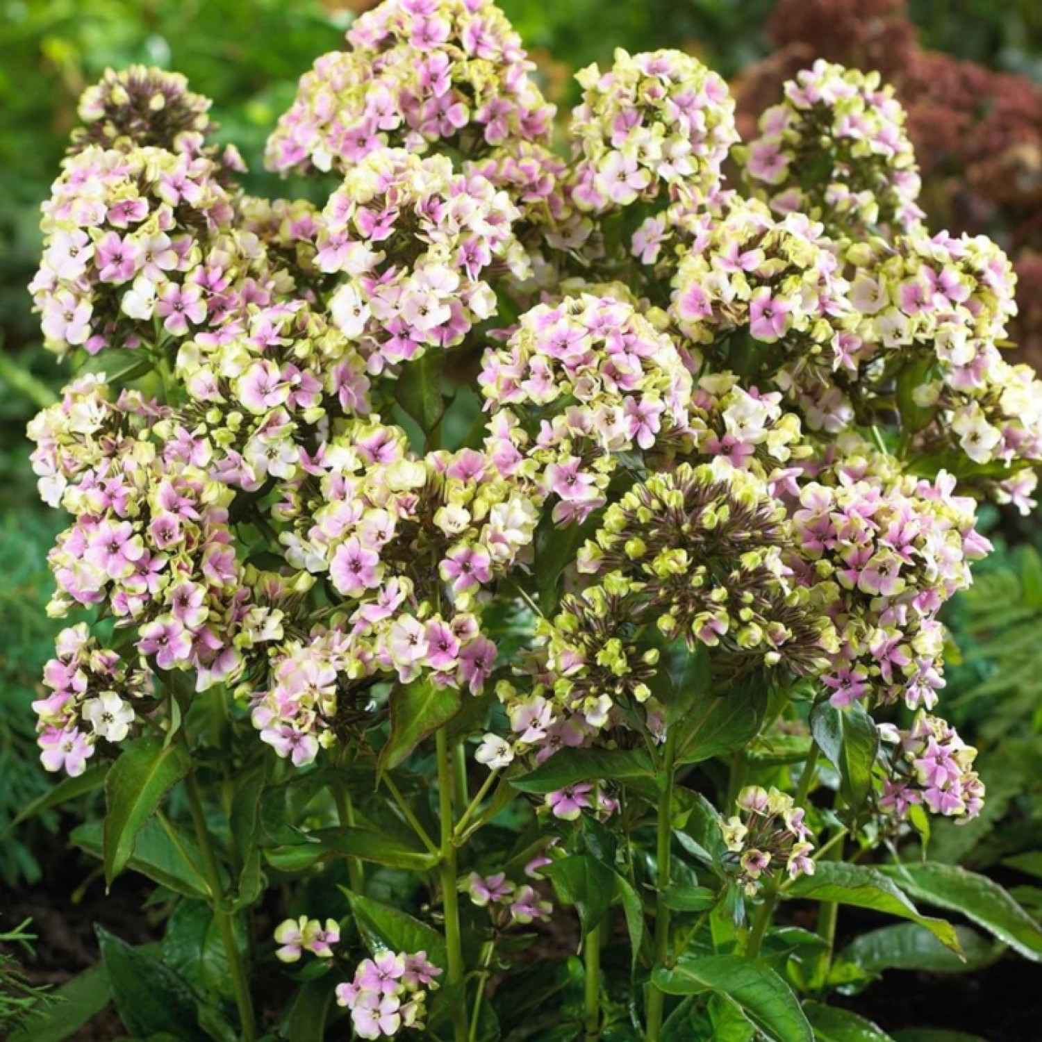 🌸 Флокс Neon Sherbet Blend — настоящий экзотический коктейль, который поражает воображение своей уникальной неоновой палитрой! Главной особенностью сорта являются его соцветия, сочетающие сразу несколько оттенков: насыщенный розово-малиновый центр лепестков эффектно контрастирует с широкой салатово-лимонной каймой. Такое сочетание создает эффект внутреннего свечения, делая куст самым ярким пятном в саду. 🌱 Растение достигает высоты 60–70 см, формируя прочные стебли с густой изумрудной листвой. 🪴 Сорт предпочитает солнечные места или легкую полутень, где контрастная кайма проявляется наиболее выразительно.