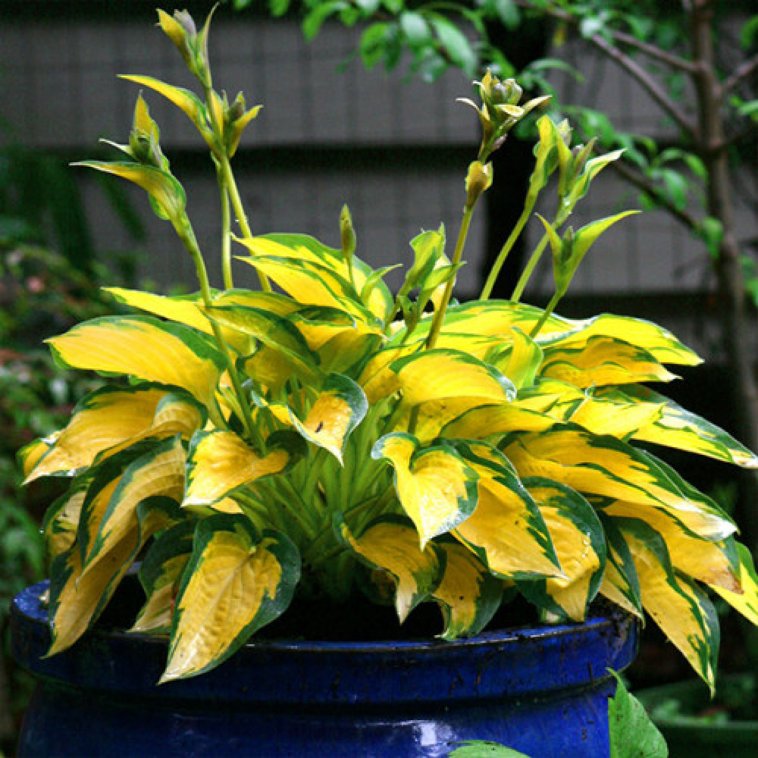 🍃 Хоста Orange Marmalade — настоящее солнечное сияние в вашем саду, поражающее своей способностью менять цвет! Главной особенностью сорта является уникальный центр листа: весной он появляется ярко-оранжево-желтым, со временем становится светло-желтым, а к концу сезона выбеливается до кремового. Всё это дополняется широкой неравномерной сизо-зеленой каймой, что создает невероятно аппетитный «мармеладный» контраст.