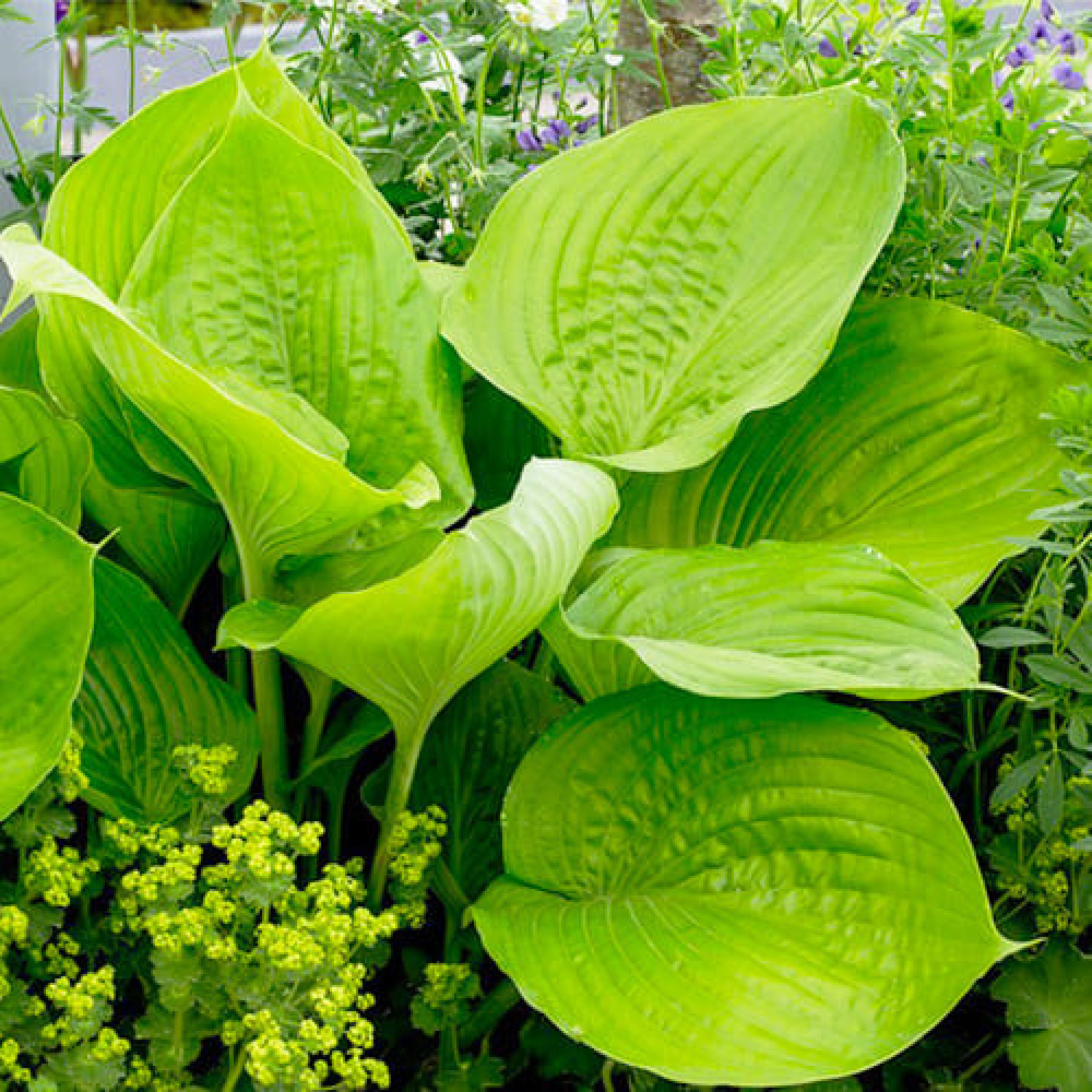 🍃 Хоста Sum and Substance — настоящий гигант и обладатель титула «Хоста года», поражающий своими королевскими размерами и солнечным цветом! Главной особенностью сорта являются огромные глянцевые листья сердцевидной формы, которые на солнце приобретают яркий золотисто-желтый оттенок, а в тени остаются нежно-салатными. Массивность и благородная фактура делают этот сорт главным акцентом любой садовой композиции.