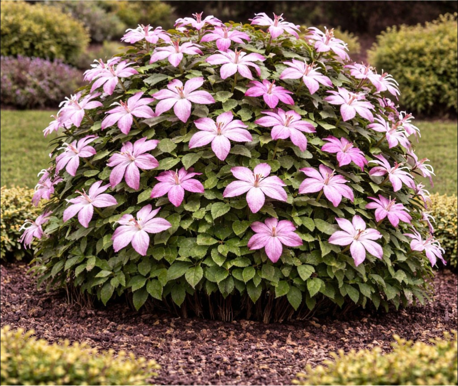 🌱 Период цветения очень продолжительный и обильный: с июля по сентябрь. Размер цветка в диаметре составляет 5–7 см. Аромат цветов легкий, приятный. 🪴 Сорт предпочитает солнечные или слегка затененные участки. Клематис I Am Lady Q относится к 3-й группе обрезки (сильная), отличается высокой устойчивостью к заболеваниям и отличной морозостойкостью, что делает его идеальным для вертикального озеленения в любом уголке сада.