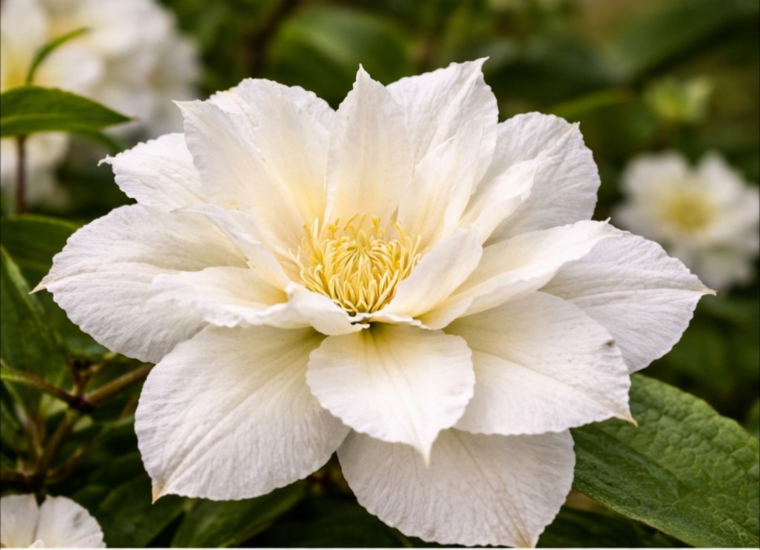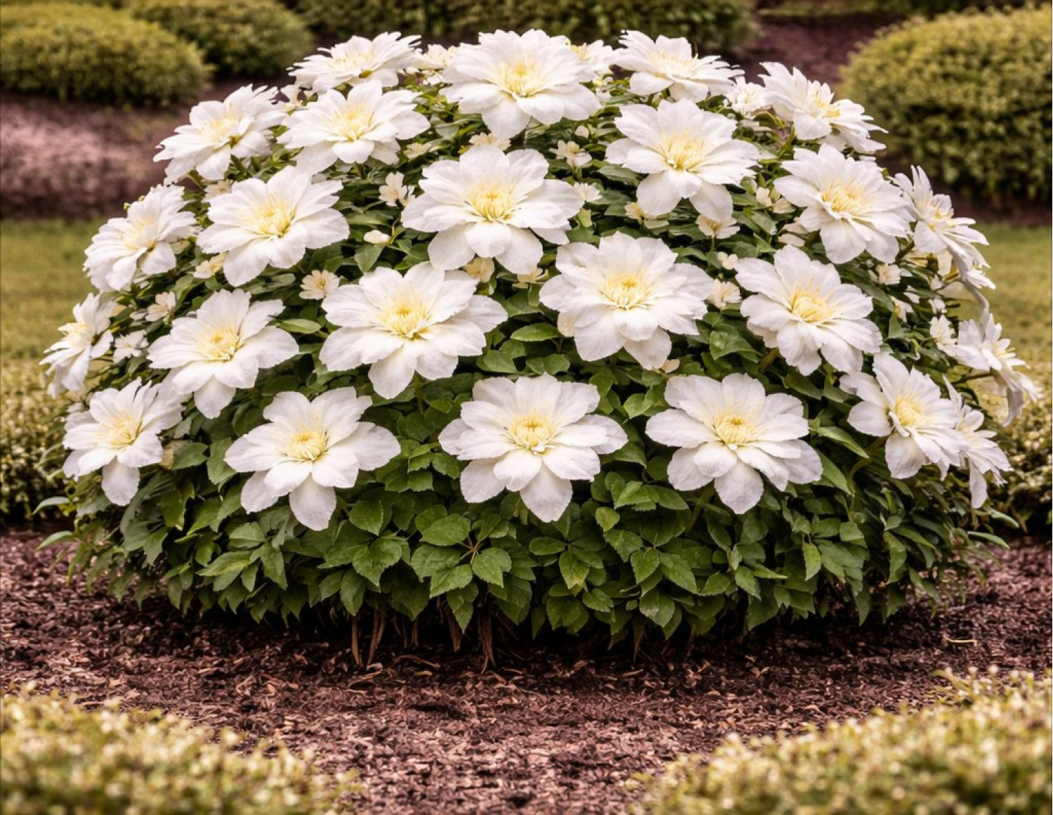 🌱 Период цветения очень обильный и продолжительный: с июня по август. Размер цветка в диаметре составляет около 5–6 см. Аромат цветов почти неуловим. 🪴 Сорт предпочитает солнечные или слегка затененные участки. Клематис Mary-Claire относится к 3-й группе обрезки (сильная), отличается высокой устойчивостью к заболеваниям и отличной морозостойкостью, что делает его надежным обитателем любого сада.