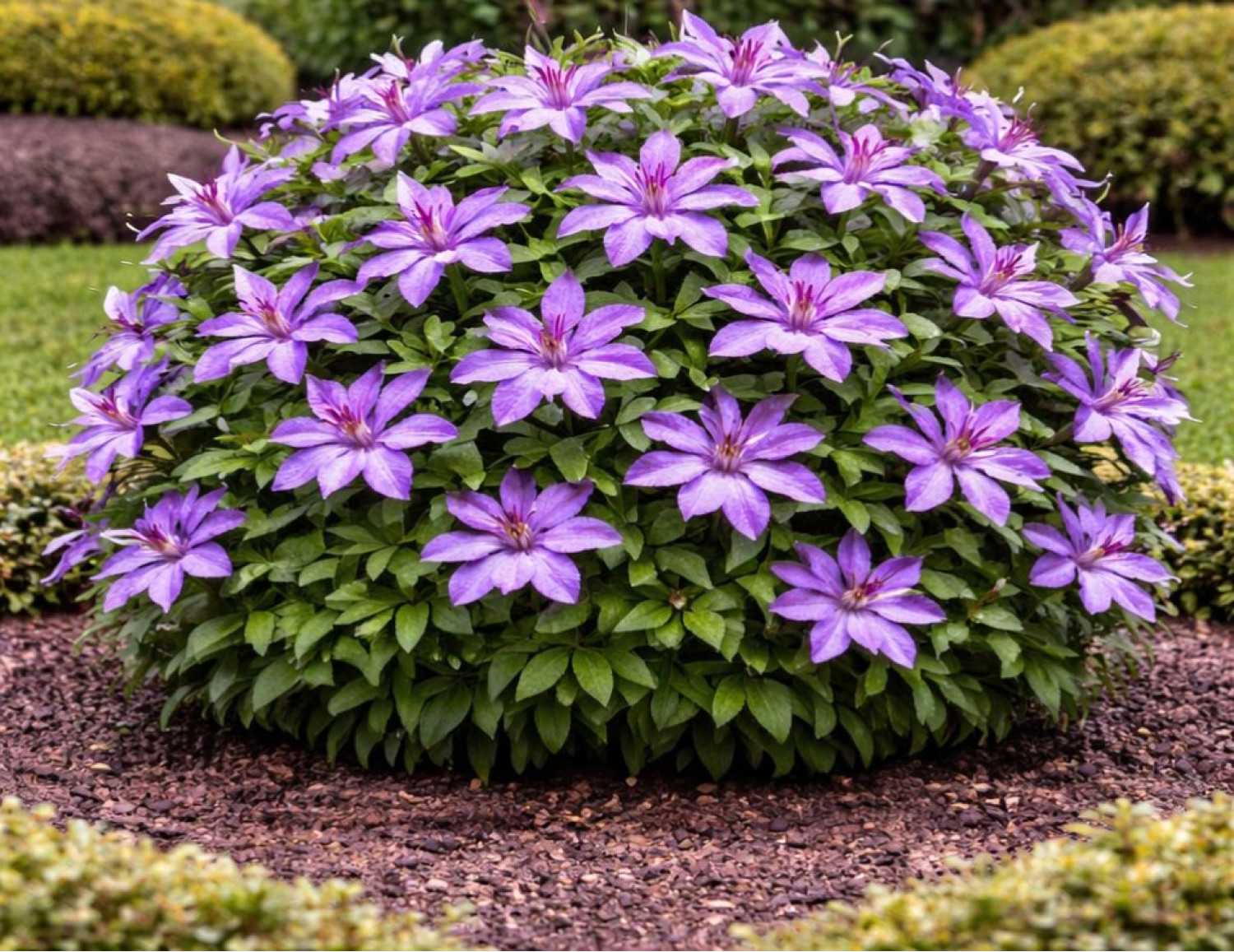 🌱 Период цветения проходит в два этапа: первая обильная волна длится в мае–июне на побегах прошлого года, а вторая — в августе–сентябре на новом приросте. Размер цветка в диаметре составляет 12–15 см. Аромат цветов почти неуловим. 🪴 Сорт предпочитает солнечные или слегка затененные участки, защищенные от ветра. Клематис Mrs N. Thompson относится ко 2-й группе обрезки (слабая) и отличается хорошей морозостойкостью и устойчивостью к заболеваниям.