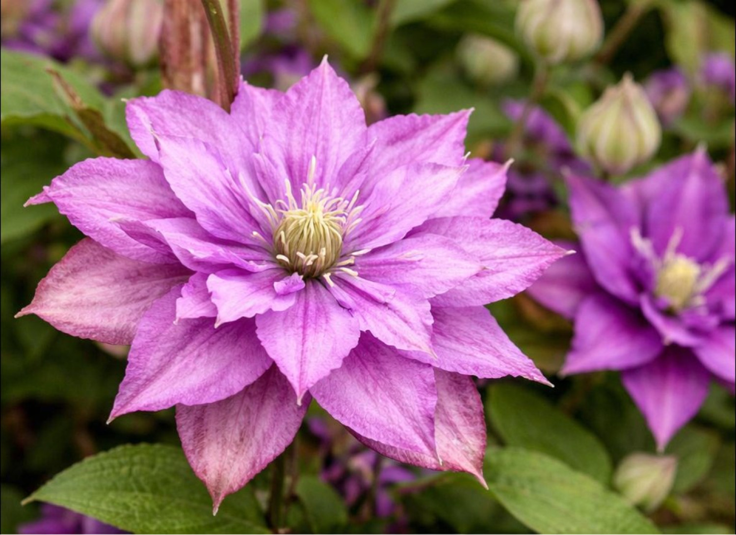 🌱 Период цветения продолжительный: с июня по август. Диаметр цветка составляет примерно 12–14 см. Аромат у цветов практически отсутствует. 🪴 Сорт предпочитает солнечные или слегка притенённые участки, защищённые от сильных ветров. Клематис Rollercoaster относится к 3-й группе обрезки (сильной), отличается хорошей морозостойкостью и неприхотливостью в уходе, отлично подходит для вертикального озеленения.