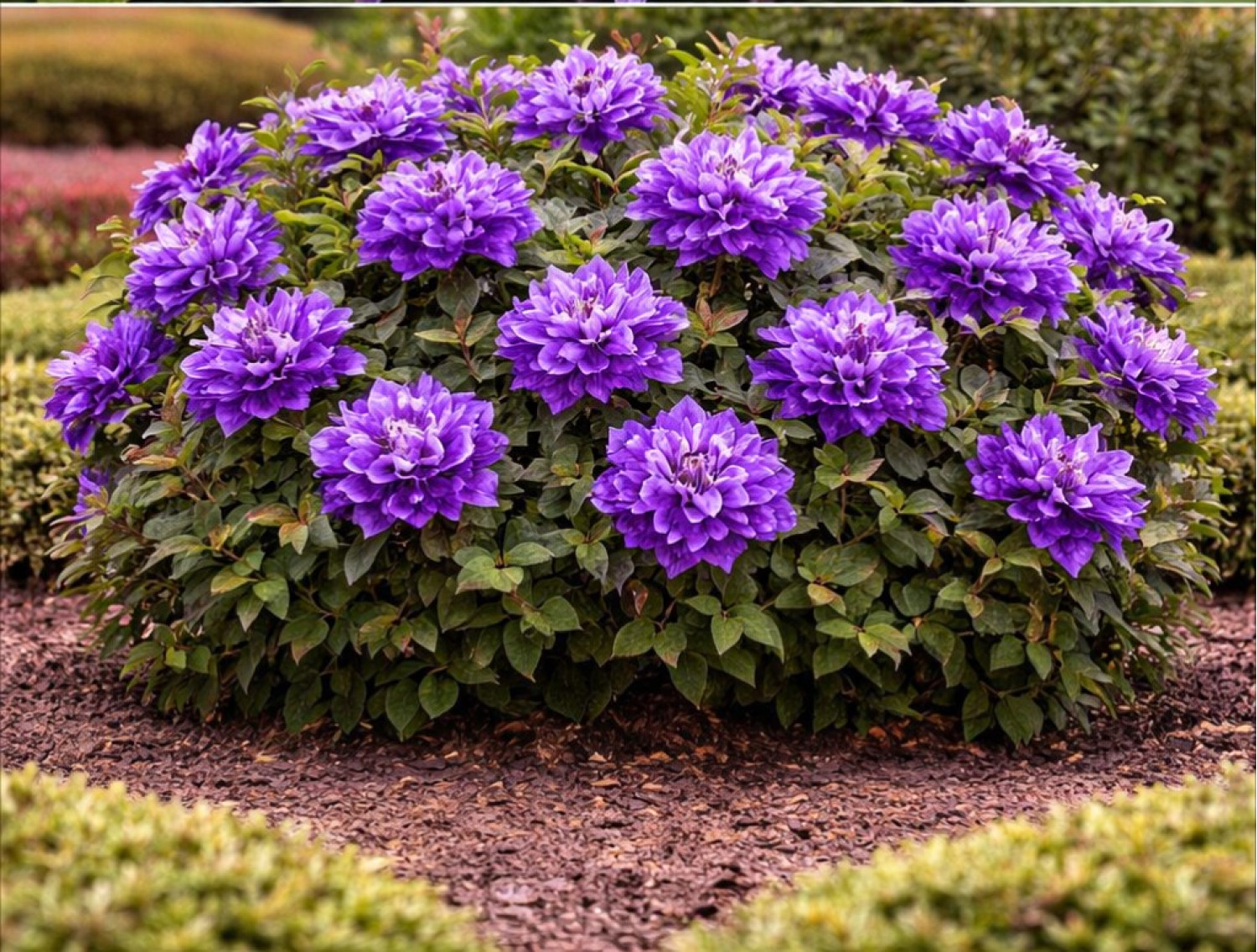 🌱 Период цветения продолжительный: с мая–июня с возможным повторным цветением летом. Диаметр цветка составляет около 12–14 см. Аромат у цветов слабый или практически отсутствует. 🪴 Сорт предпочитает солнечные или слегка притенённые места, защищённые от сильного ветра. Клематис Shin-shigyoku относится ко 2-й группе обрезки (умеренной), отличается морозостойкостью и неприхотливостью в уходе.