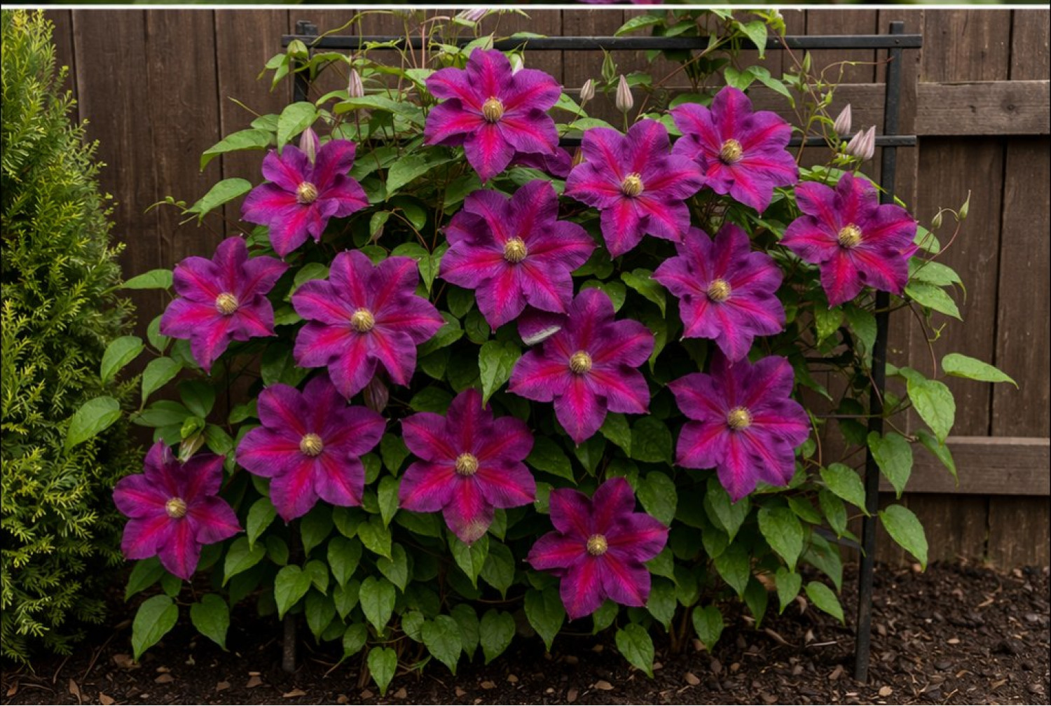 🌱 Период цветения продолжительный и обильный: с июня по август. Диаметр цветка составляет около 12–15 см. Аромат у цветов слабый или практически отсутствует. 🪴 Сорт предпочитает солнечные или слегка притенённые места, защищённые от сильного ветра. Клематис Star of Pakistan относится к 3-й группе обрезки (сильной), отличается морозостойкостью и неприхотливостью в уходе.