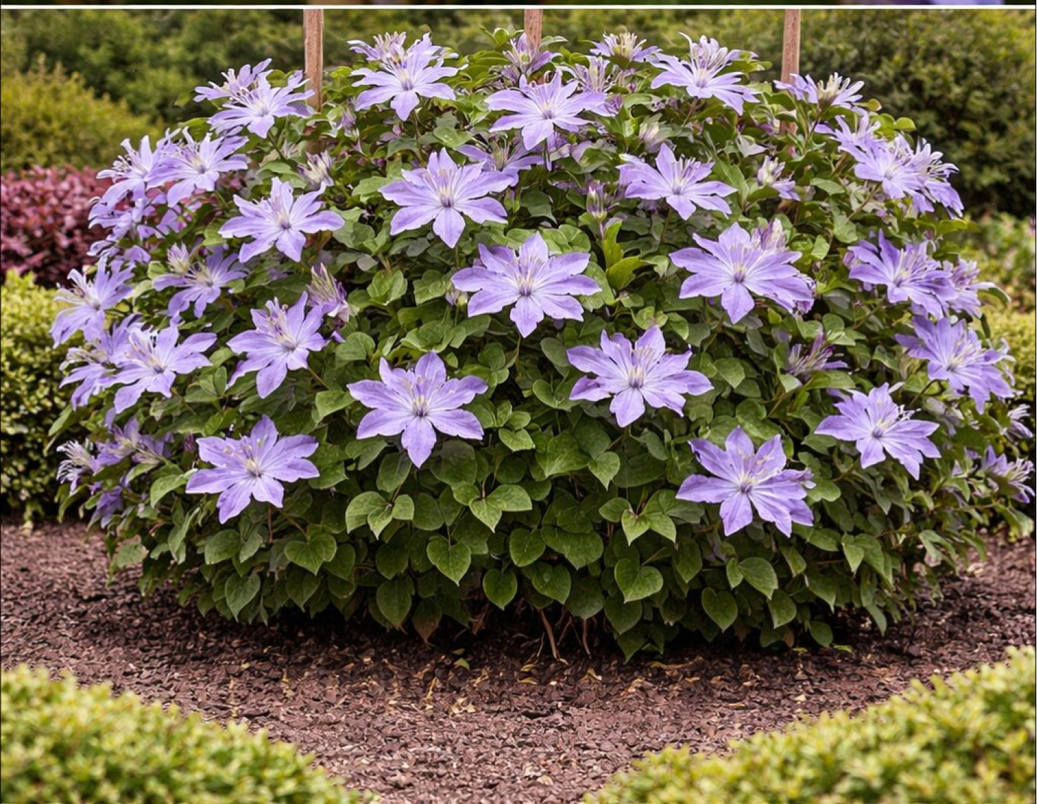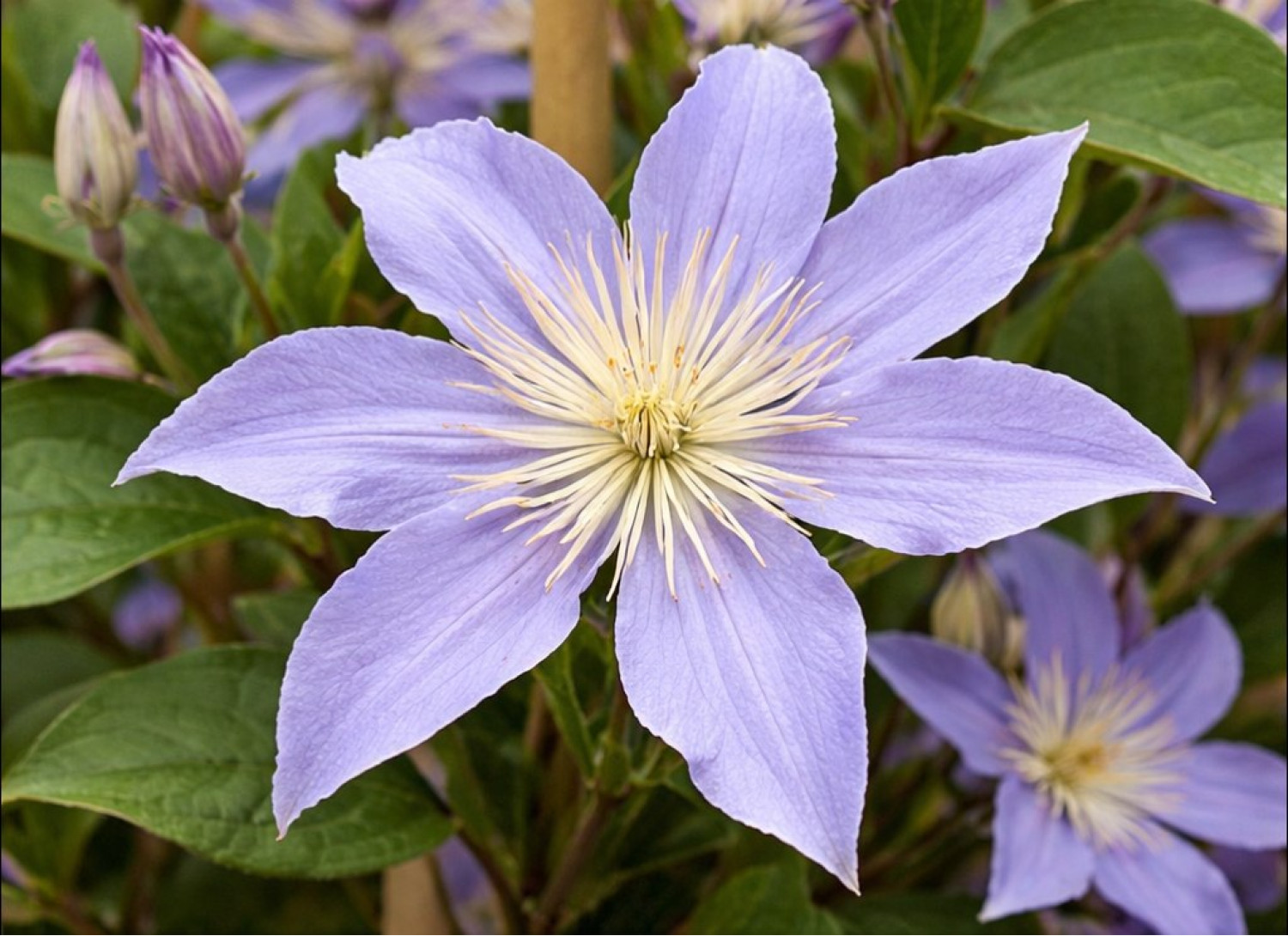 🌱 Период цветения продолжительный: с июня по август. Диаметр цветка составляет около 12–15 см. Аромат у цветов слабый или практически отсутствует. 🪴 Сорт предпочитает солнечные или слегка притенённые места, защищённые от ветра. Клематис Star River относится к 3-й группе обрезки (сильной), отличается морозостойкостью и неприхотливостью в уходе.