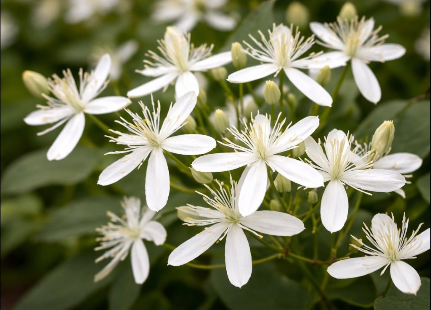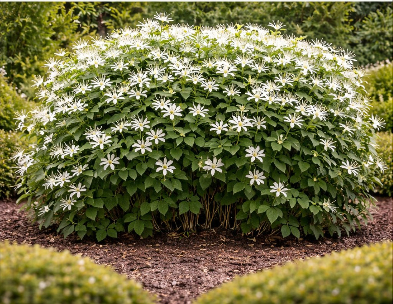 🌱 Период цветения продолжительный: обычно в сентябре–октябре, с повторным цветением в благоприятные годы. Диаметр цветка небольшой — около 3–5 см, но соцветия чрезвычайно декоративны благодаря их количеству. Аромат у цветов приятный, лёгкий, свежий. 🪴 Сорт предпочитает солнечные или слегка притенённые участки, защищённые от сильного ветра. Клематис Terniflora [Maxim] относится к 3-й группе обрезки (сильной), отличается морозостойкостью и неприхотливостью в уходе.