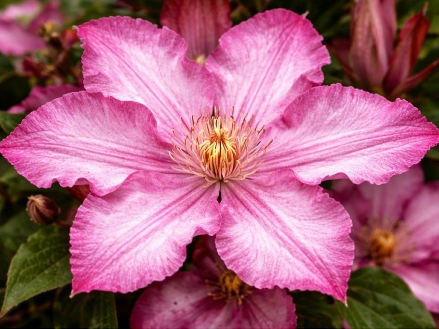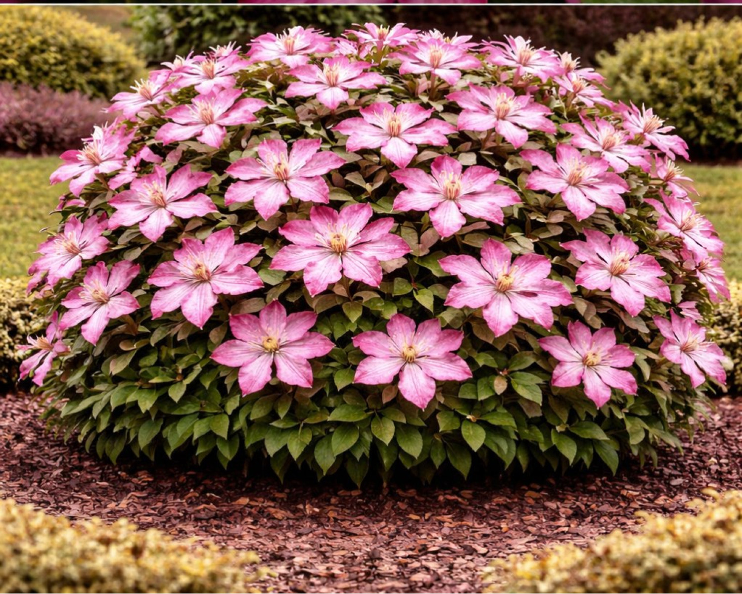 🌸 Клематис Liberty — это эффектный сорт британской селекции, который относится к группе крупноцветковых ранних клематисов. Главной особенностью растения является его нарядный двухцветный окрас: белоснежные или кремовые лепестки украшены широкой, выразительной ярко-розовой или малиновой каймой по краям. По типу цветок простой, состоит из 6–8 широких лепестков с волнистыми краями и красивым пучком контрастных темных тычинок в центре. 🌱 Куст компактный, достигает высоты 1.5–2 метра, что делает его идеальным выбором для выращивания в контейнерах на террасах, а также для небольших садовых опор.