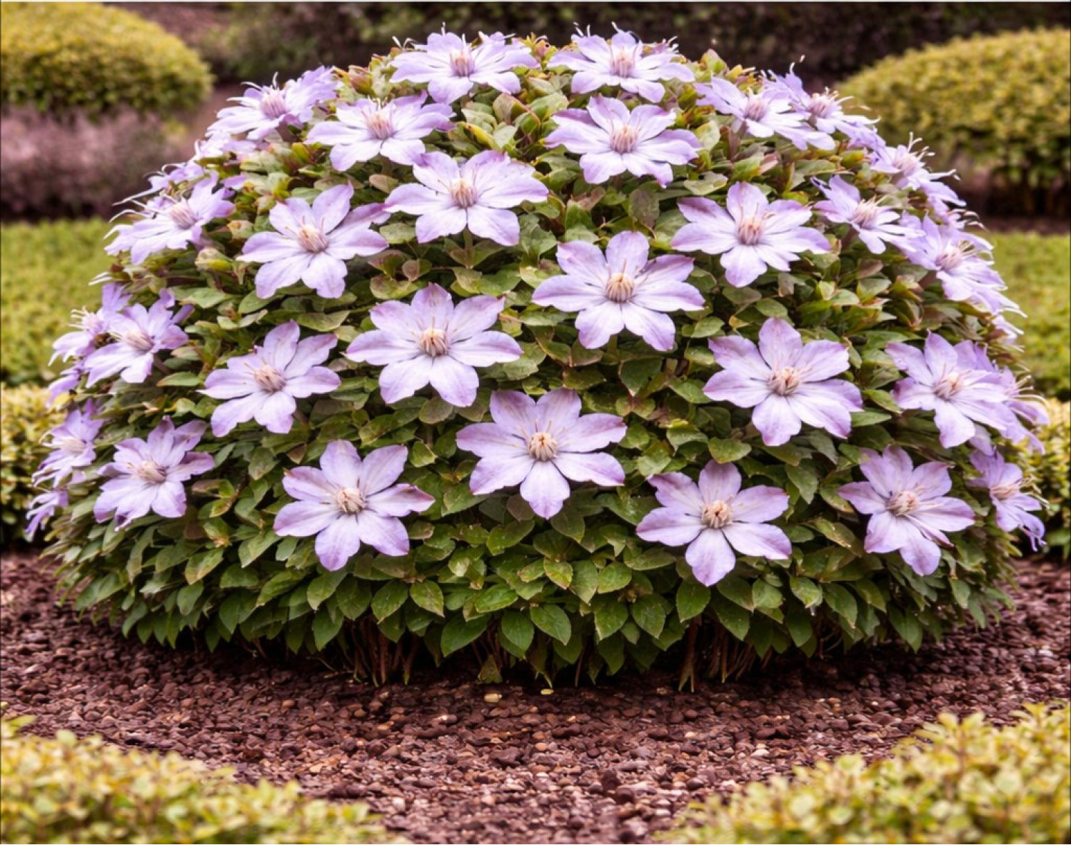 🌱 Период цветения очень продолжительный и обильный: с июля по сентябрь. Размер цветка в диаметре составляет 5–7 см. Аромат цветов легкий, едва уловимый. 🪴 Сорт предпочитает солнечные или слегка притененные места. Клематис Lucky Charm относится к 3-й группе обрезки (сильная), отличается исключительной устойчивостью к болезням (включая вилт) и превосходной морозостойкостью, что делает его идеальным выбором для садоводов.
