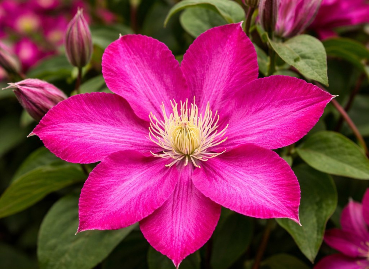 🌸 Клематис Vino — это элегантный сорт крупноцветкового клематиса с насыщенной винно-красной окраской цветков. Его крупные, яркие цветы создают эффектные декоративные соцветия, а светлые тычинки красиво подчёркивают глубину цвета и выразительность растения. 🌱 Куст обладает сильной силой роста и достигает высоты 2–3 метров, формируя пышную лиану, которая украсит арки, перголы и заборы.