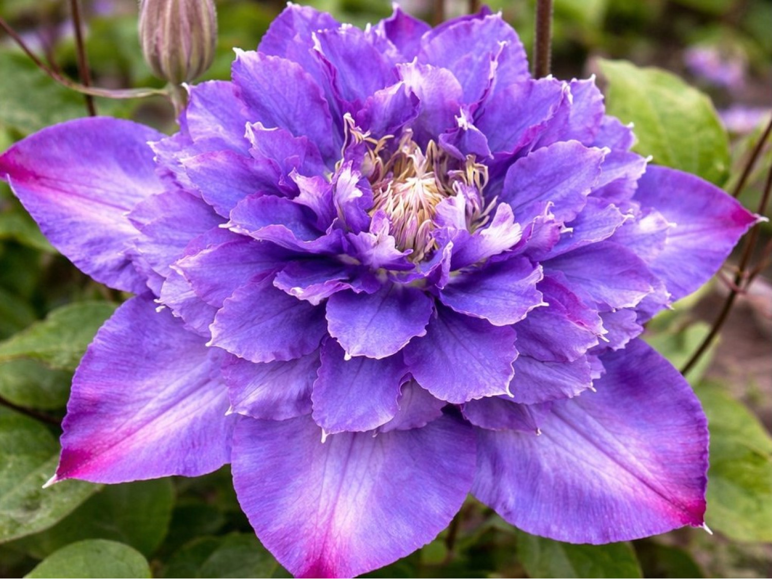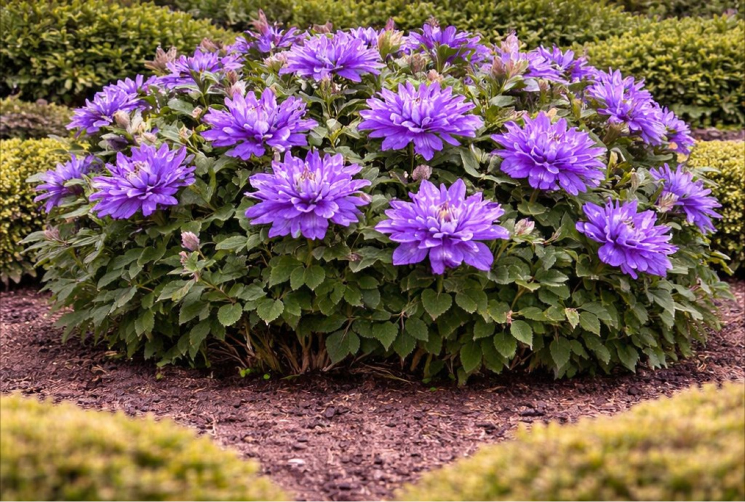 🌸 Клематис Vyvyan Pennell — это мощный крупноцветковый сорт, отличающийся яркой фиолетово-синей окраской цветков. Его крупные декоративные цветы создают эффектные соцветия, а светлые тычинки подчёркивают глубину цвета и добавляют выразительности растению. 🌱 Куст обладает сильной силой роста и достигает высоты 3–4 метров, формируя густую, обильно цветущую лиану, которая идеально подходит для украшения арок, пергол и заборов.
