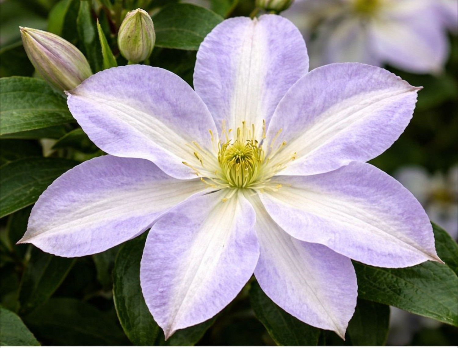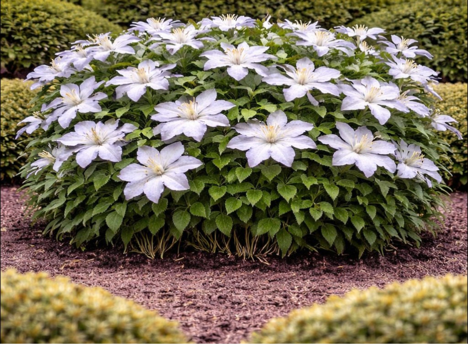 🌱 Период цветения продолжительный: с июня по август, возможно повторное цветение летом. Диаметр цветка составляет около 12–14 см. Аромат у цветов слабый или практически отсутствует. 🪴 Сорт предпочитает солнечные или слегка притенённые участки, защищённые от ветра. Клематис Yukikomachi относится ко 2-й группе обрезки (умеренной), отличается высокой морозостойкостью и неприхотливостью в уходе.