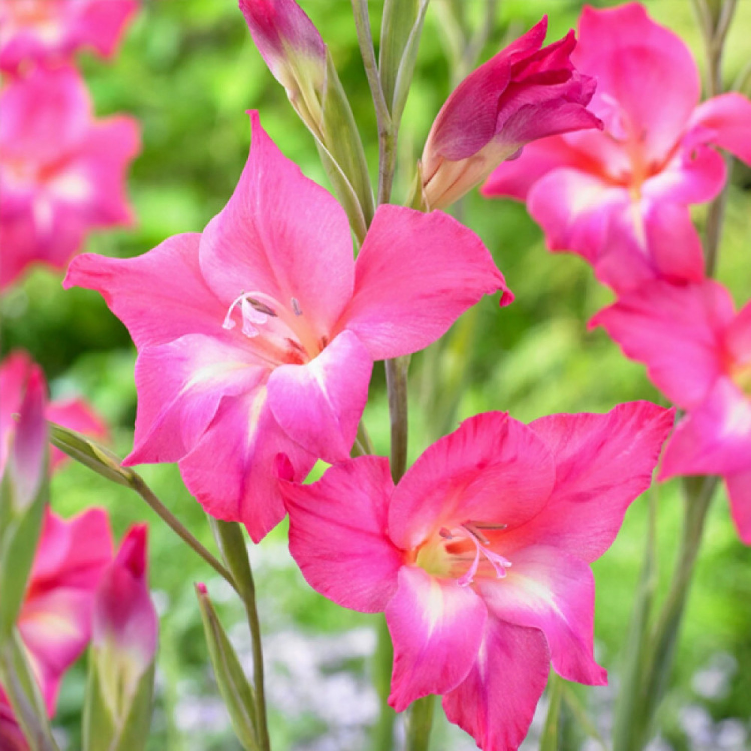🌺 Гладиолус Charm — миниатюрный шедевр среди низкорослых гладиолусов (группа Nanus), сочетающий в себе изысканность и невероятную устойчивость! 🌱 Растение компактное, высотой всего 60–80 см, что позволяет ему легко выдерживать порывы ветра без дополнительных опор. Цветы среднего размера (диаметром 5–9 см) имеют привлекательный пурпурно-розовый или яркий малиновый окрас с нежными кремово-белыми пятнами в центре нижних лепестков. Соцветия плотные и грациозные, распускаются постепенно с июля по сентябрь, наполняя сад особым шармом.