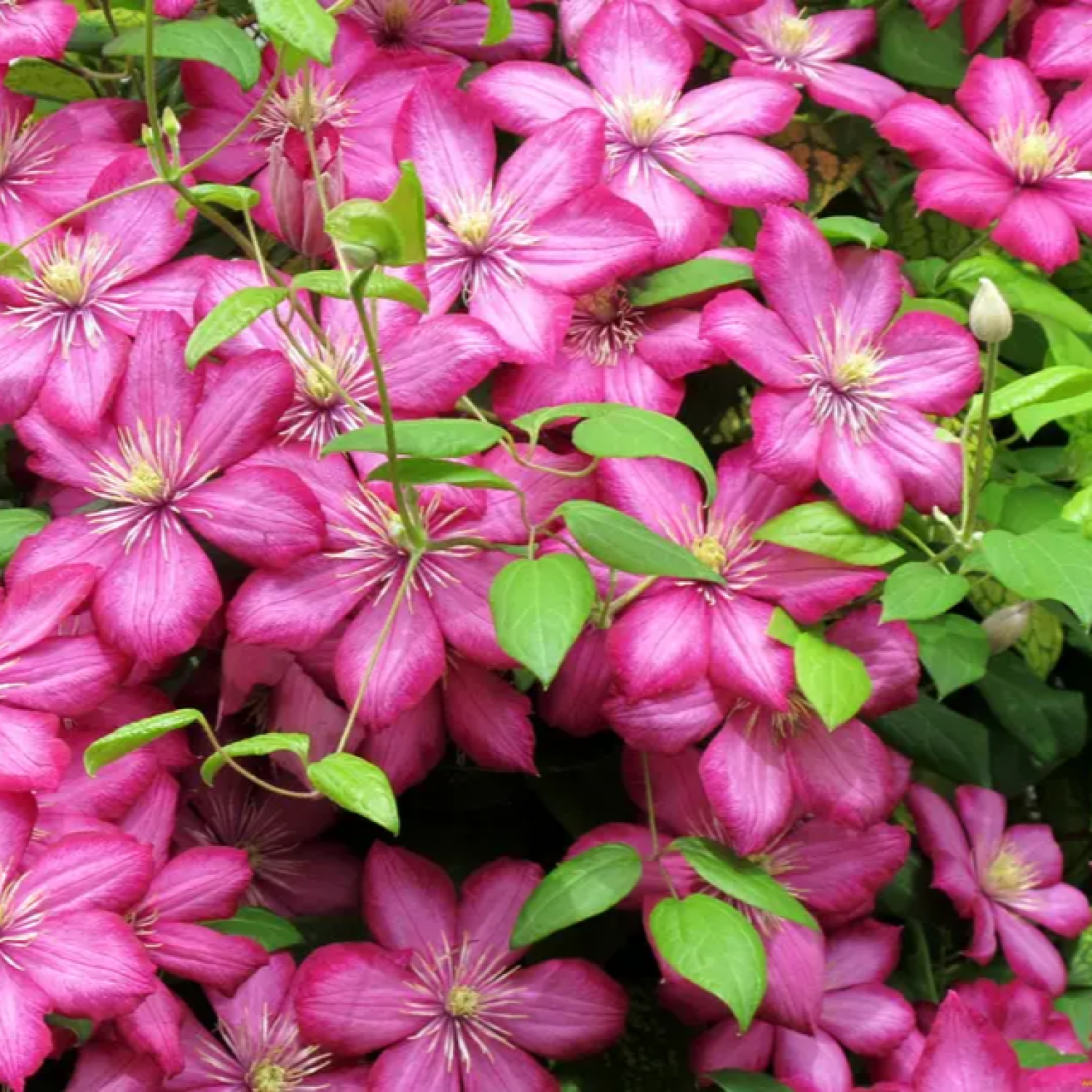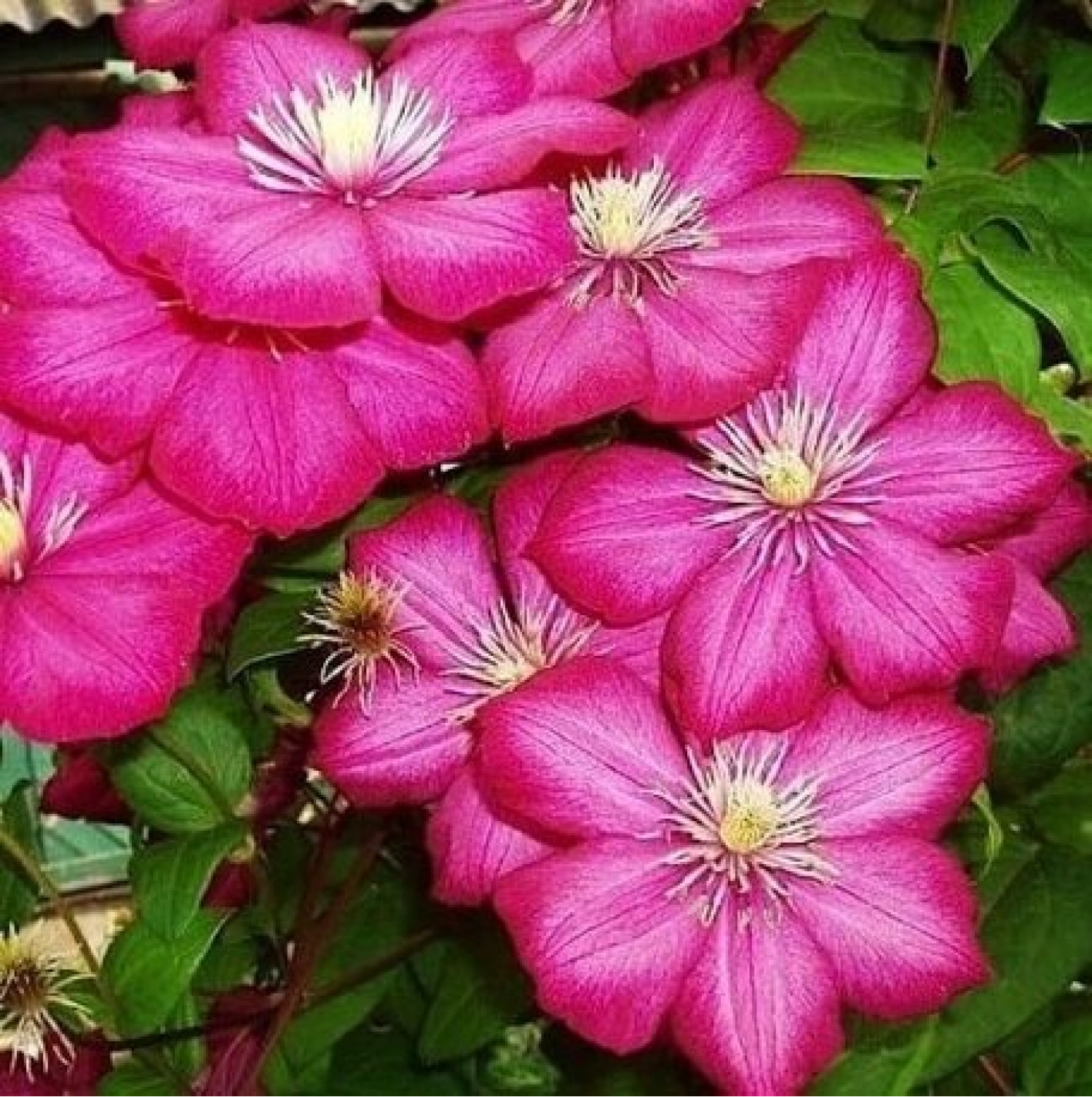 🌸 Клематис Ville de Lyon — це яскравий великоквітковий сорт, який приваблює глибоким пурпурно-червоним забарвленням квітів. Великі та ефектні квіти створюють декоративні суцвіття, а контрастні світлі тичинки підкреслюють насиченість кольору та виразність рослини. 🌱 Кущ має сильну силу росту й досягає висоти 2–3 метри, утворюючи пишну, рясно квітучу ліану, яка ідеально підходить для прикрашання арок, пергол та огорож.