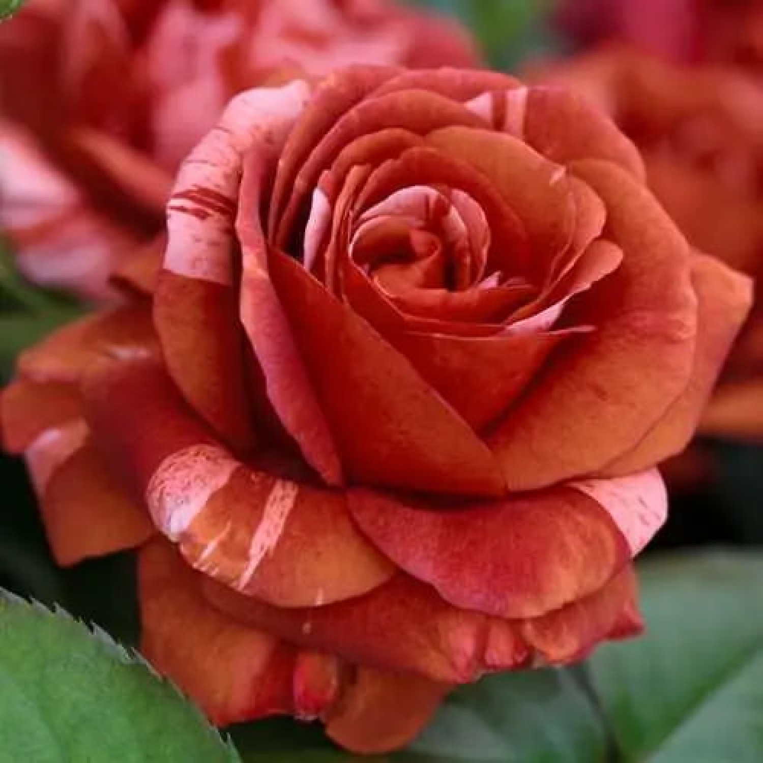 🌹Троянда «Брауні» — це унікальний, ефектний сорт плетистої троянди, виведений у Франції селекціонером Simpson у 2009 році. Цей сорт цінується за своє оригінальне, смугасте забарвлення, яке не схоже на жодний інший сорт. Троянда «Брауні» створює неповторний акцент у саду завдяки своїй незвичній палітрі кольорів. Забарвлення строкате, поєднує відтінки, що нагадують молочний шоколад або каву з молоком, із більш насиченими червоними, малиновими або рожевими смугами та штрихами. Малюнок на кожній квітці унікальний.