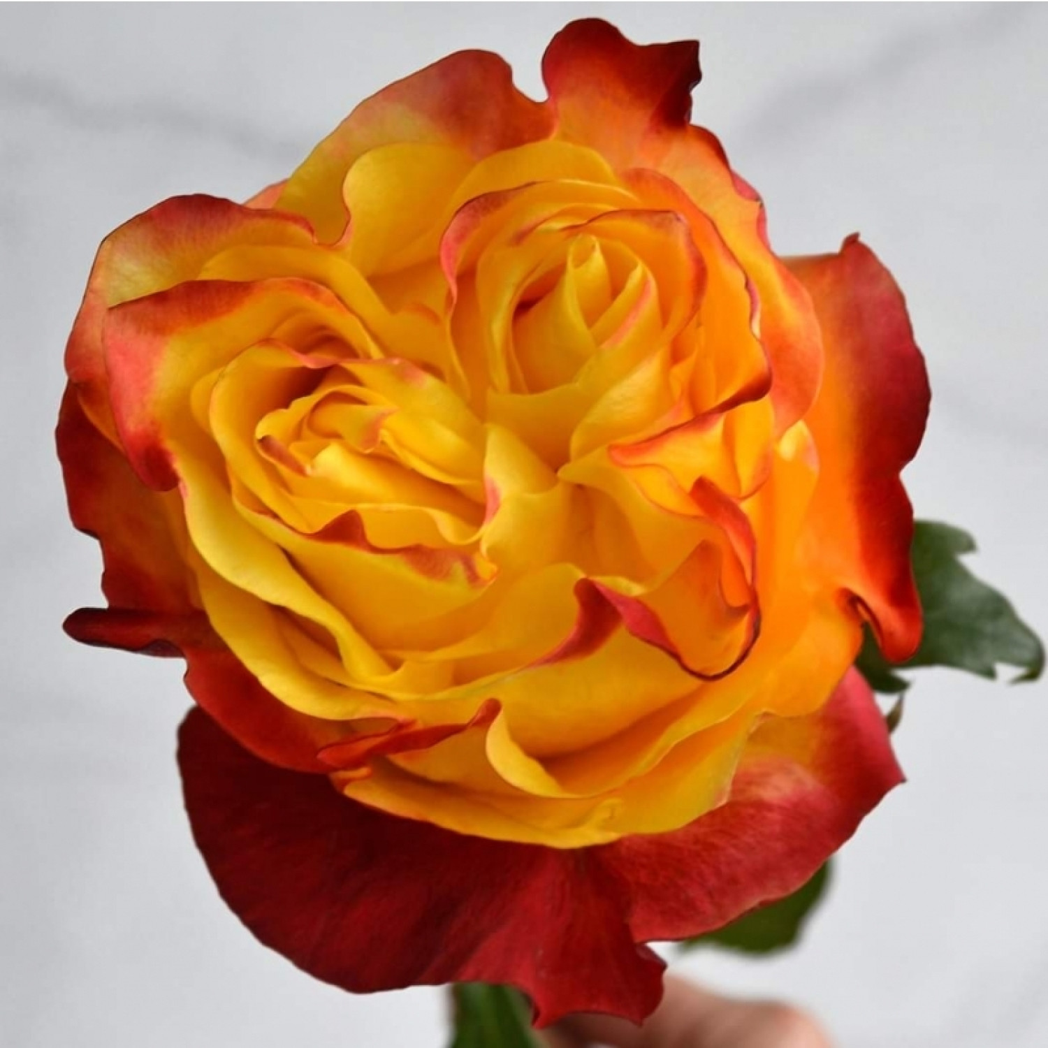 Квіти цього різновиду зазвичай невеликі, діаметром близько 4-6 см. Вони мають класичну, елегантну форму бутона, який при повному розкритті стає чашоподібним або плоско-чашоподібним, демонструючи щільно розташовані оксамитові пелюстки.