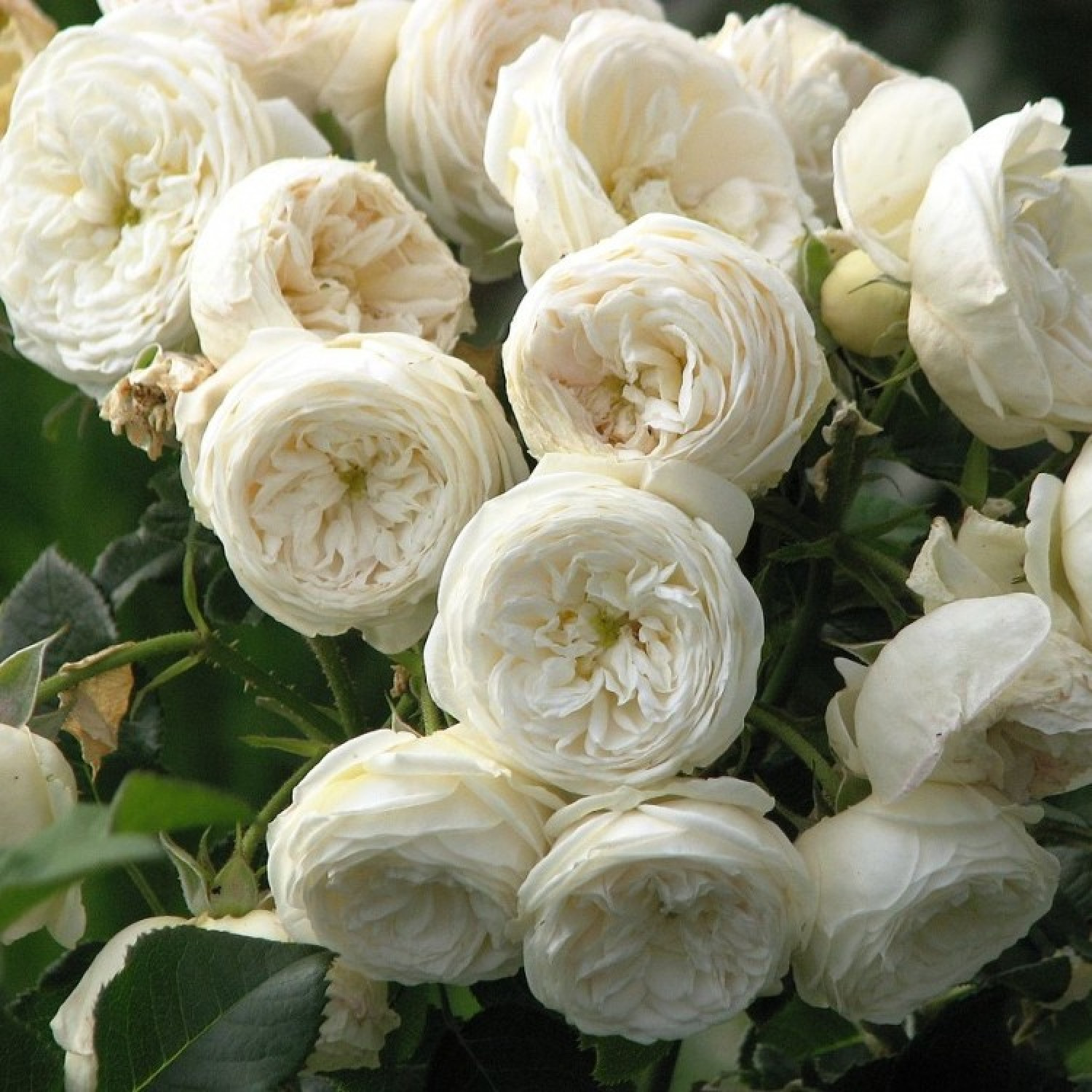 🌿Квіти розміром 5–8 см, мають ідеальну кулясту або чашоподібну форму, густомахрові. Колір квітів кремово-білий, слонової кістки, при цьому зовнішні пелюстки мають легкий, витончений зеленуватий відтінок. Квітки зібрані у великі зонтикоподібні суцвіття, що налічують від 5 до 10 бутонів у кожній кисті.