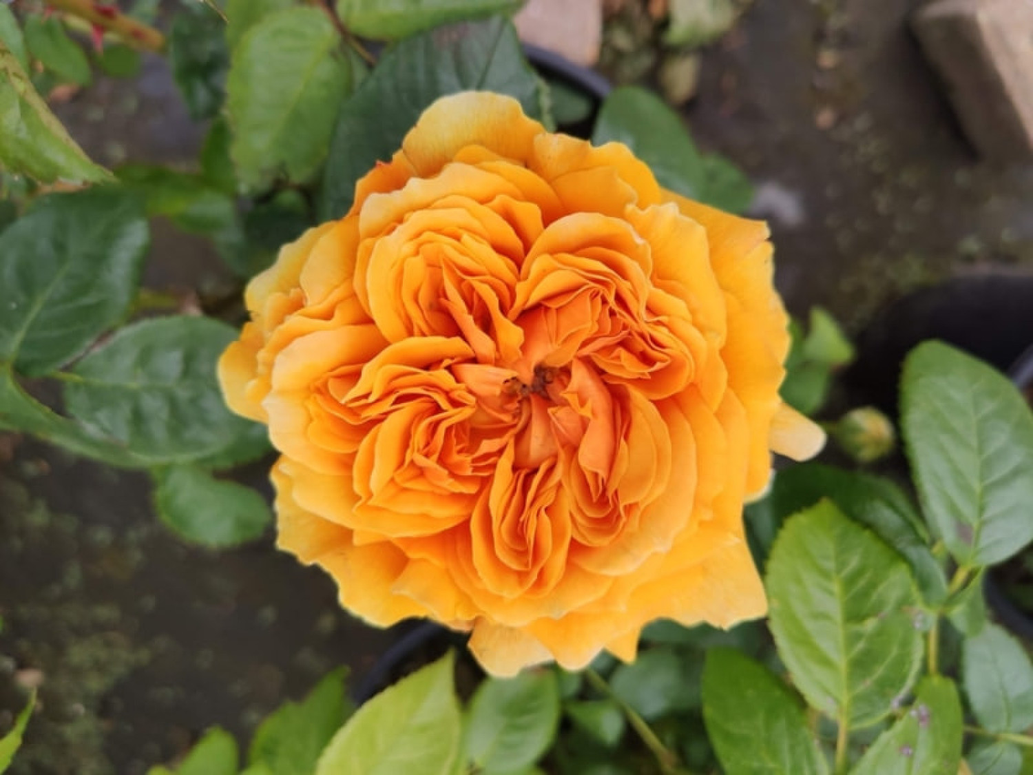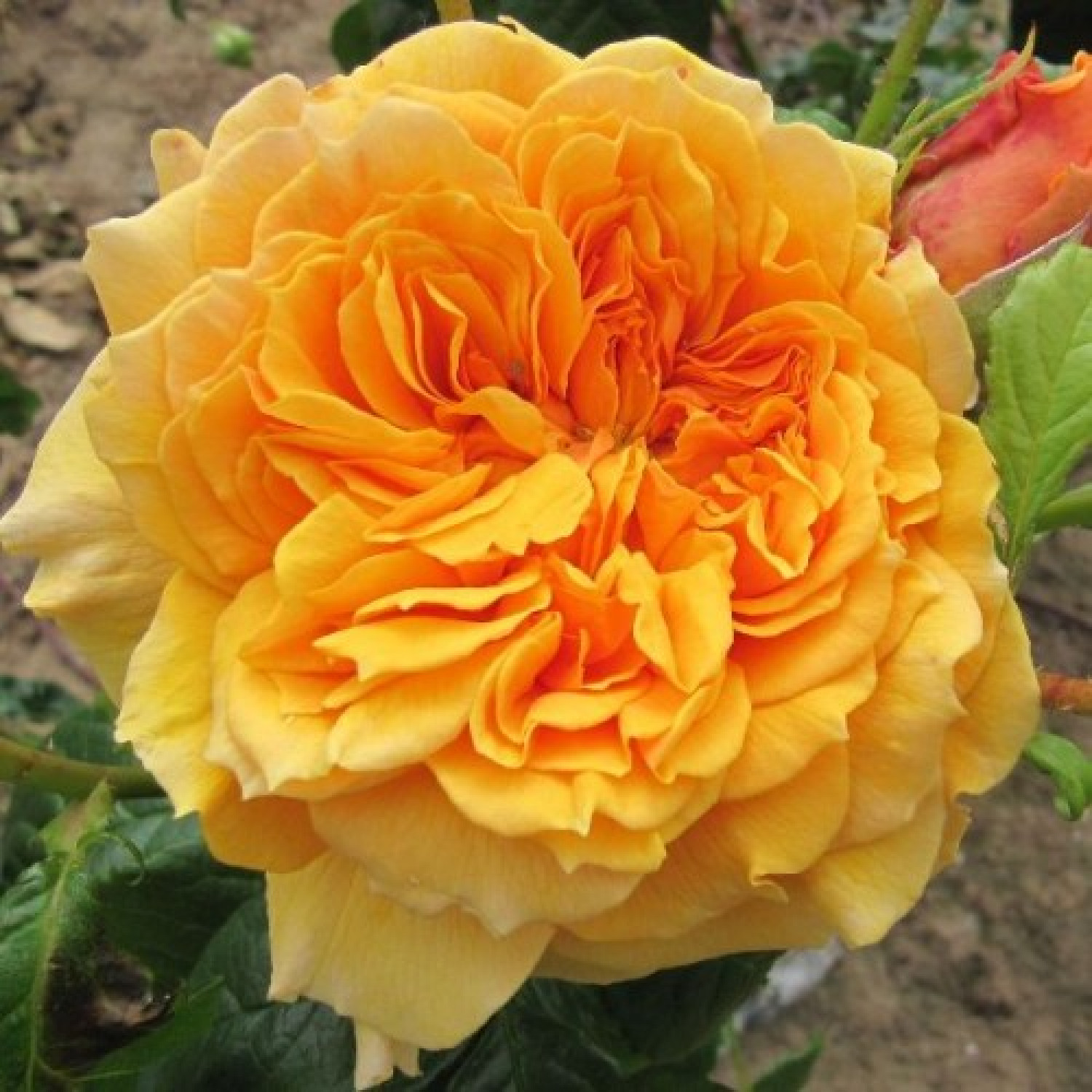 🌱Квіти "Лея Туту" мають насичений золотисто-жовтий або помаранчево-жовтий колір, який не вигорає на сонці. Забарвлення може варіюватися залежно від умов вирощування. Квітки великі, діаметром 10–12 см, густомахрові, розеткоподібної форми, що нагадує жоржини. Вони з'являються поодиноко або зібрані в невеликі суцвіття і довго тримаються на кущі, не пошкоджуючись дощем.