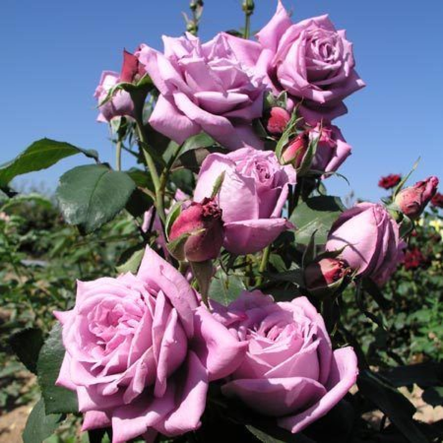 🌹 Троянда "Мамі Блу" має глибокий сріблясто-бузковий або лавандовий колір з інтенсивними фіолетовими відблисками, що робить їх дуже незвичними та привабливими.