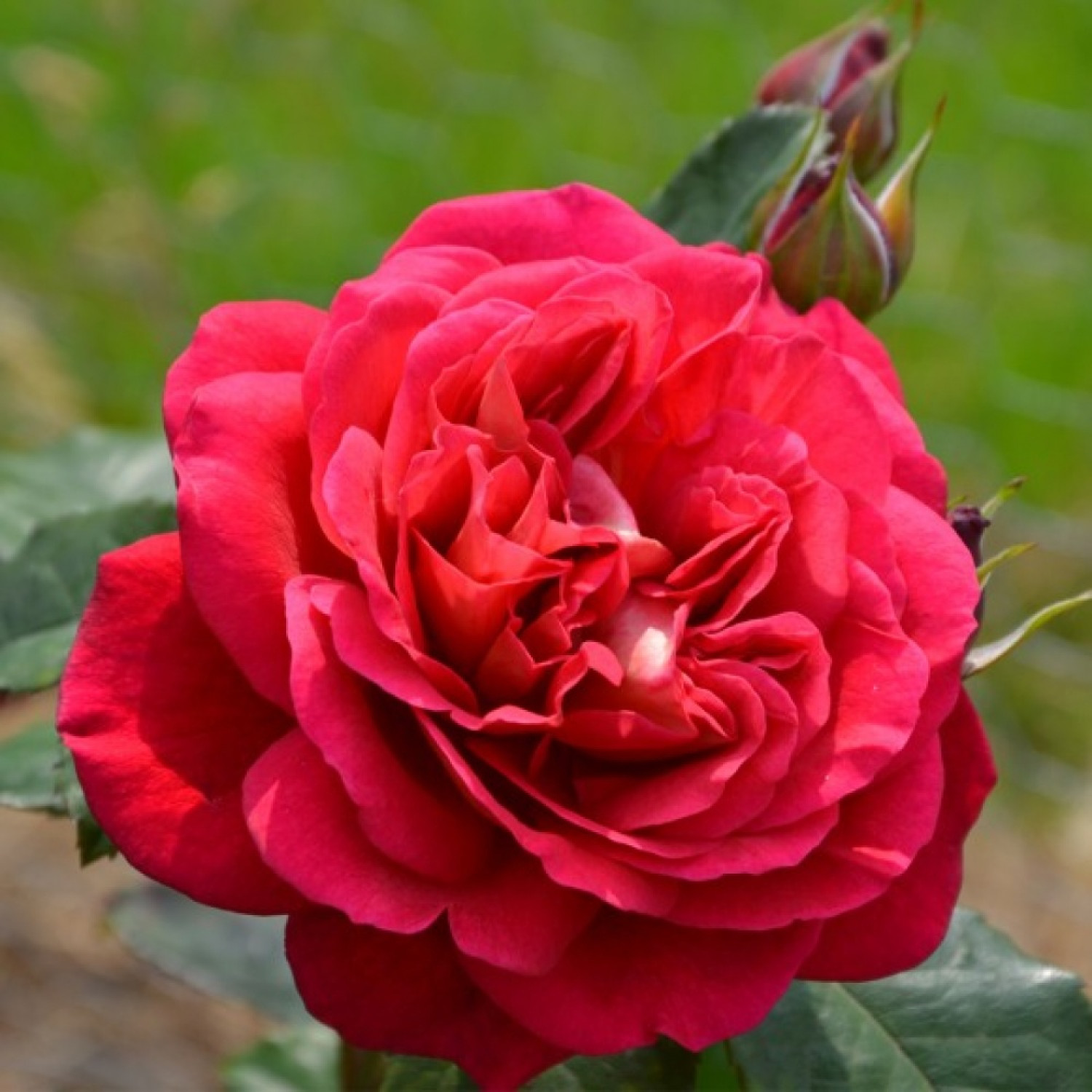 🌱Мона Ліза має насичений, яскравий червоний або малиново-червоний колір, який не вигорає на сонці і залишається стабільним навіть у дощову погоду. Квітки середнього розміру, густомахрові (близько 25 пелюсток), ностальгічної чашоподібної форми, що нагадує старовинні троянди. Вони зібрані у великі суцвіття-кисті, що створює ефект безперервного цвітіння. Діаметр квітки зазвичай становить приблизно від 7 до 8 сантиметрів. Аромат у цього сорту легкий, ніжний, ледь відчутний.