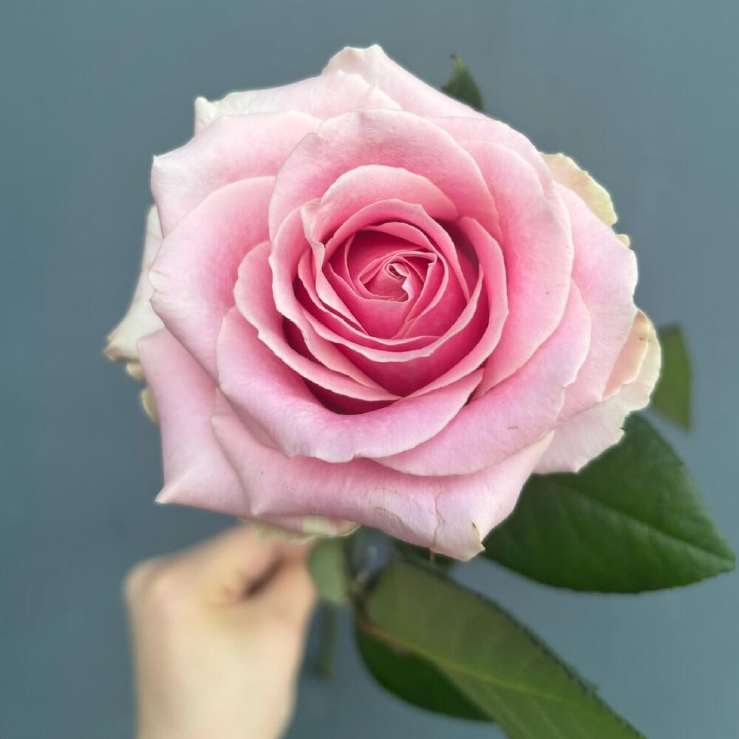 🌹Троянда Пінк Аваланж має вишуканий, ніжний пастельно-рожевий відтінок. Зазвичай забарвлення трохи інтенсивніше в центрі квітки і стає світлішим, майже кремовим або злегка зеленуватим по краях зовнішніх пелюсток, особливо коли бутон ще закритий. Цей м'який перехід кольорів додає їй елегантності та універсальності у флористиці.