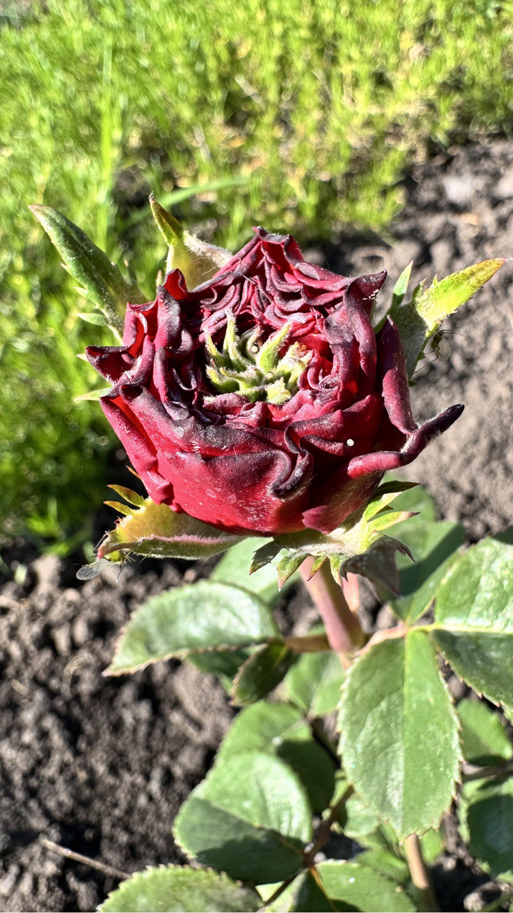 🌿 Густомахрова троянда з хвилястими червоними пелюстками та яскраво-зеленою серцевиною. Діаметр квітки близько 10 см. Назва сорту перекладається як «червоне око» — ідеально передає враження від вигляду квітки. Унікальний сорт із виразним, контрастним центром, який надає квітам сміливого та сучасного вигляду. Підходить на зріз, має середній аромат, цвіте повторно.