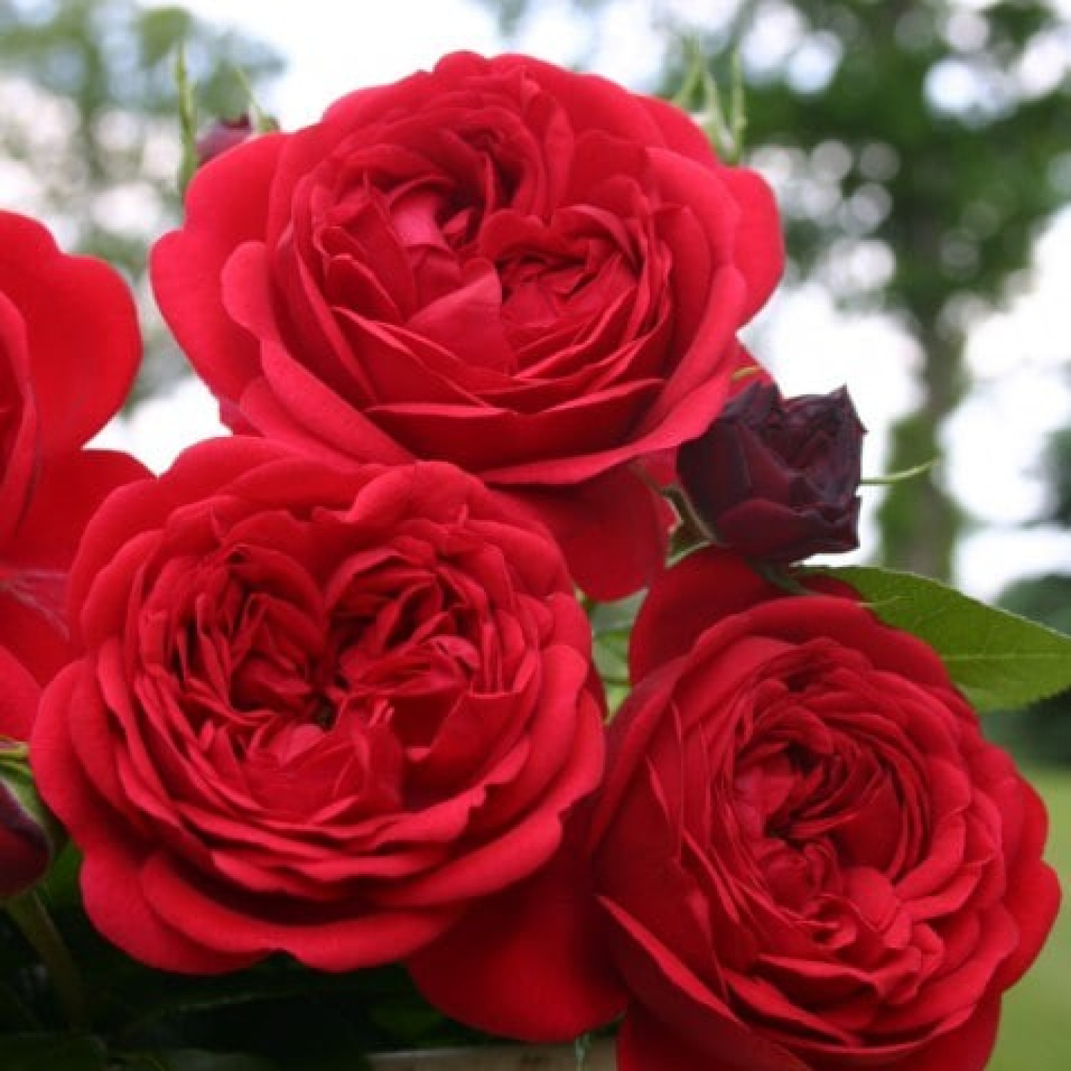 🌱Троянда «Ред Капхен» цінується за своє яскраве, насичене забарвлення та ностальгічну форму квітки. Її колір — глибокий, оксамитовий темно-червоний або малиново-червоний, який чудово тримає колір і не вигорає на сонці. Квітки середнього розміру, густомахрові (близько 25 пелюсток), мають чашоподібну або розеткоподібну форму, що нагадує старовинні троянди. Вони зібрані у великі, пишні суцвіття-кисті. Діаметр квітки зазвичай становить приблизно від 6 до 8 сантиметрів. Аромат у цього сорту легкий або помірний, приємний, з тонкими нотками.