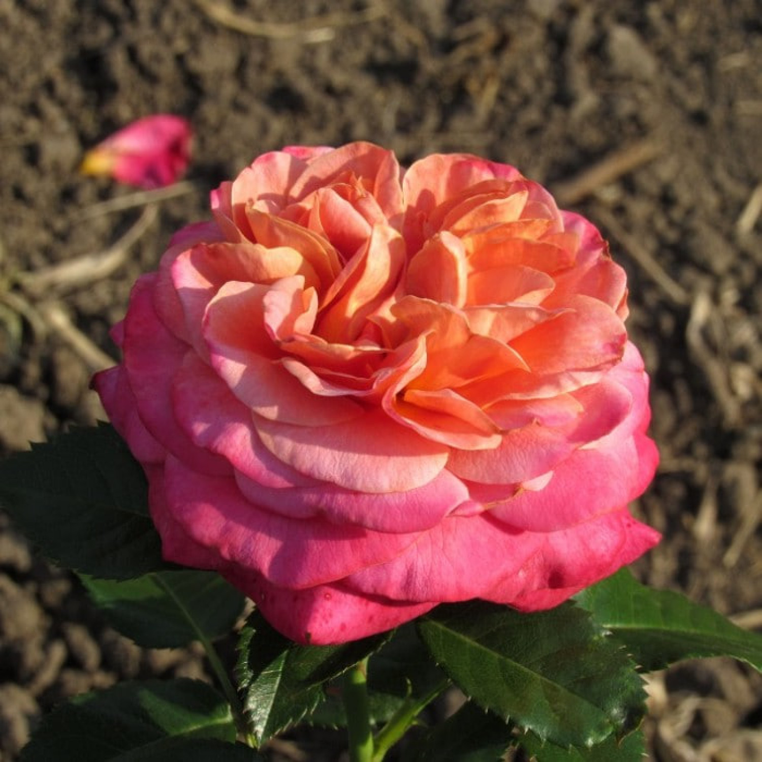 🌿Квітки мають насичений темно-рожевий колір з абрикосовими або персиковими відтінками, які додають їм глибини та м'якості. Бутони махрові, класичної елегантної форми, розкриваються повільно. Діаметр повністю розкритої квітки становить приблизно 9 см. Кущ формує вертикально зростаючу, міцну рослину з рясним і повторним цвітінням, яке триває протягом усього сезону. Сорт має добру стійкість до захворювань. Аромат приємний, з фруктовими нотками. «Сурір де Довіль» чудово підходить для декоративного озеленення саду, використання в розаріях, а також для зрізання в букети.