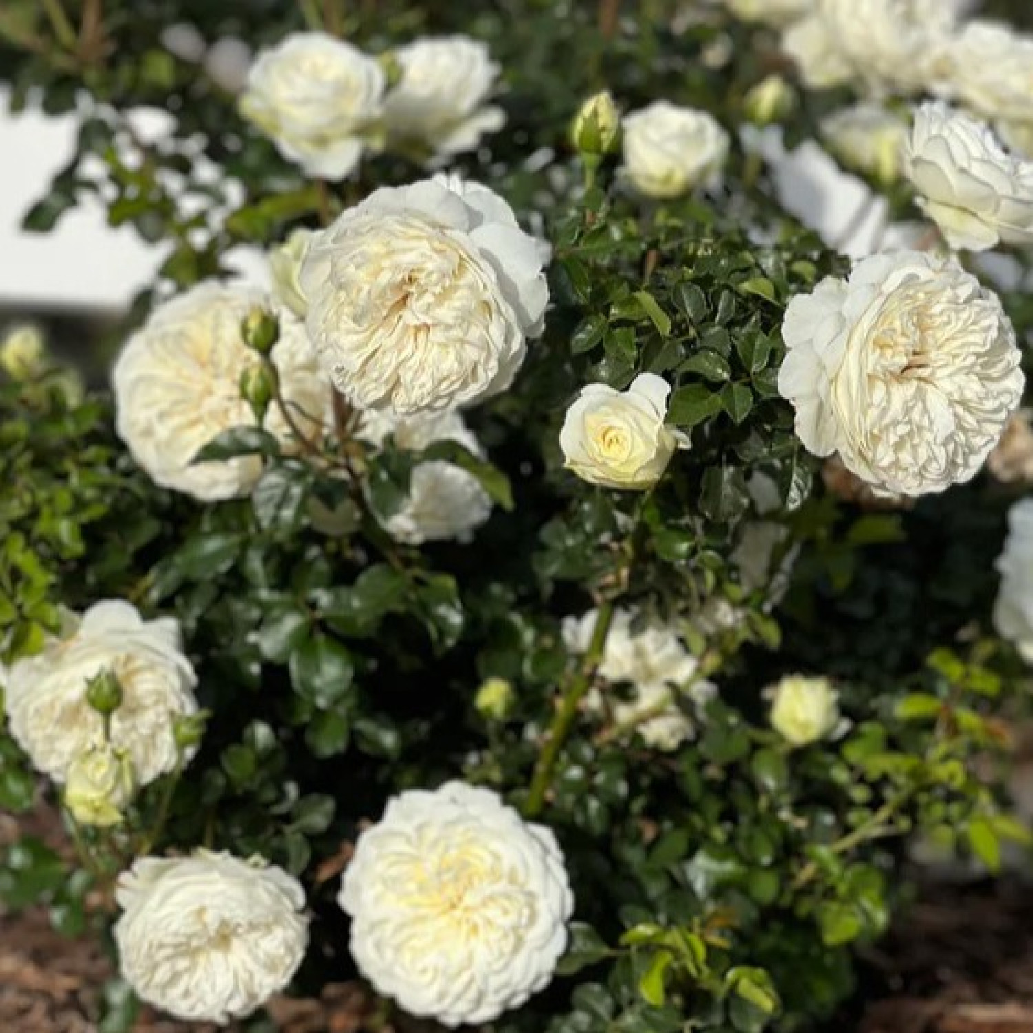 🌹 Троянда Транквіліті штамб — надзвичайно ніжний англійський сорт із ідеально округлими, майже сферичними квітками молочно-білого кольору. У центрі видно теплий кремово-лимонний відтінок, який поступово світлішає під час розкриття. Квіти дуже густомахрові, акуратні, з безліччю дрібних пелюсток, що формують вишукану ідеальну розетку. 🌿 Розмір квітки 10-12 см, аромат легкий, тонкий, свіжий, з ніжними яблучними та зеленими нотками — фірмова риса цього сорту.