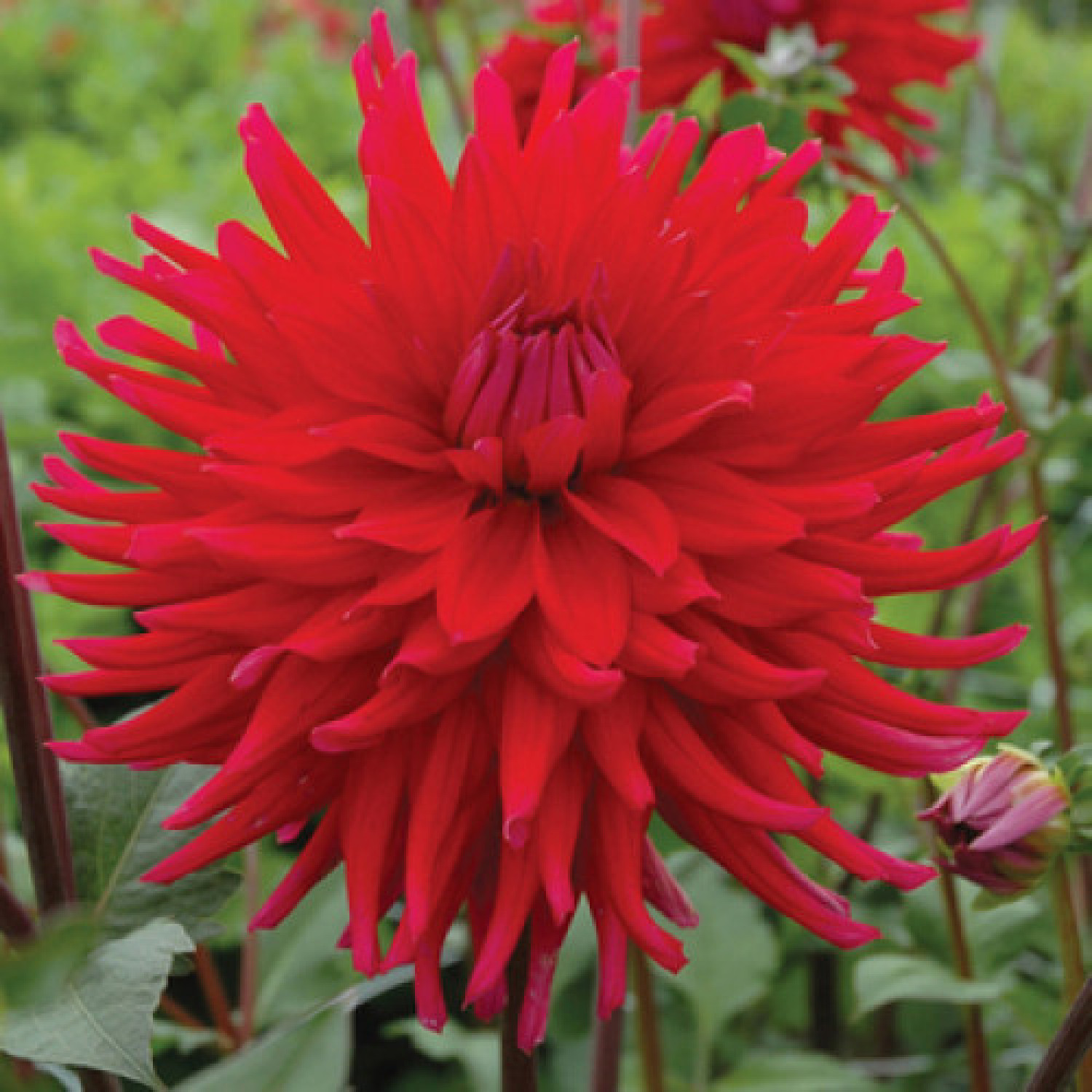 🌺 Жоржина Berger's Rekord — класичний сорт кактусових жоржин, який привертає увагу своїм вогненно-червоним кольором та бездоганною формою! 🌱 Рослина досягає висоти 90–110 см і формує густий кущ із міцними стеблами. Суцвіття діаметром 12–15 см складаються з численних вузьких пелюсток, витончено згорнутих у трубочки, що надає квітці колючого та динамічного вигляду. Колір — насичений, глибокий червоний, який зберігає свою яскравість навіть під прямими сонячними променями. Цвітіння дуже рясне та стабільне з липня до жовтня.