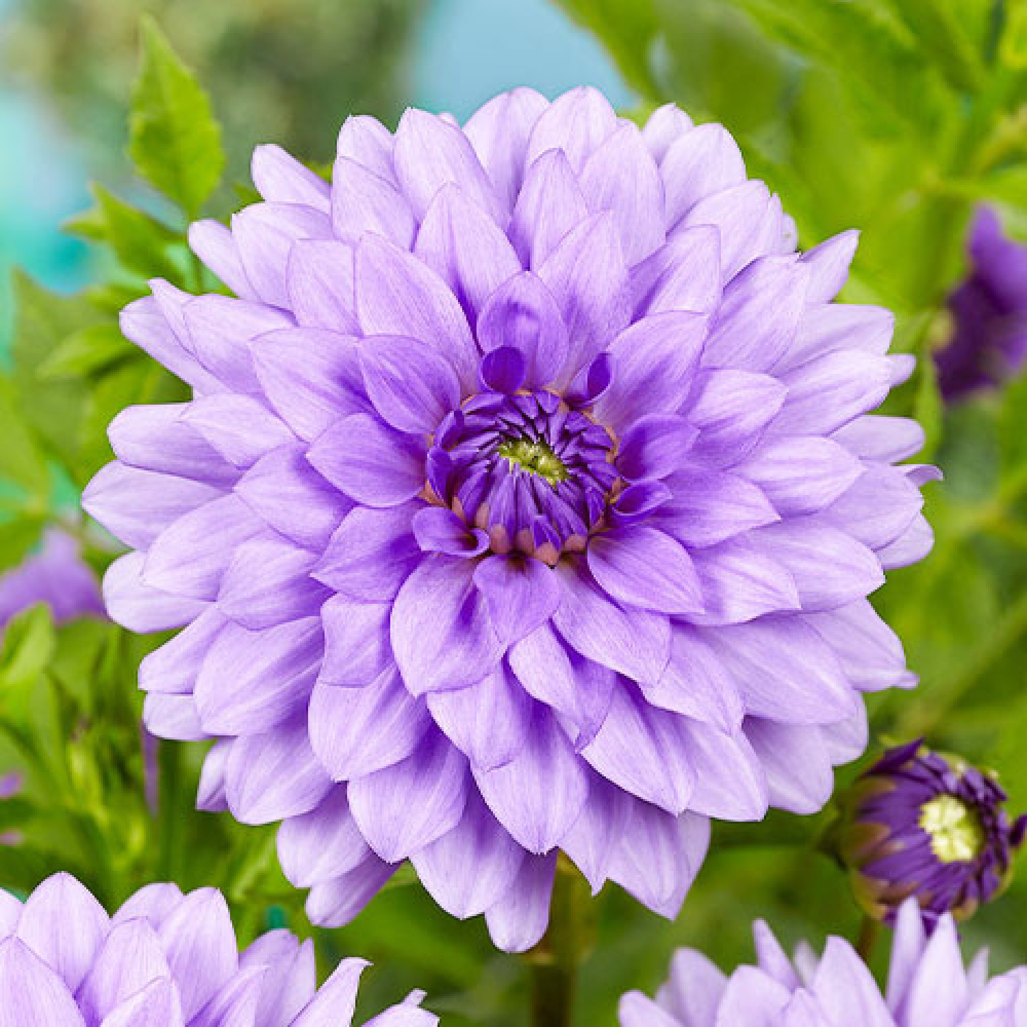 🌺 Жоржина Blue Boy (Блю Бой) — одна з найвідоміших «синіх» жоржин, хоча насправді її забарвлення — це дивовижне поєднання бузкового, лавандового та ніжно-фіолетового відтінків! 🌱 Цей декоративний сорт досягає висоти 80–100 см і формує компактний, добре розгалужений кущ. Суцвіття махрові, середнього розміру (діаметром близько 10–15 см), з ідеально покладеними пелюстками, які створюють вишуканий та елегантний вигляд. Цвітіння дуже тривале — з липня і до самих морозів у жовтні. Завдяки своєму прохолодному кольору, Blue Boy додає саду особливого шарму та візуальної свіжості, чудово контрастуючи з білими або сріблястими рослинами.