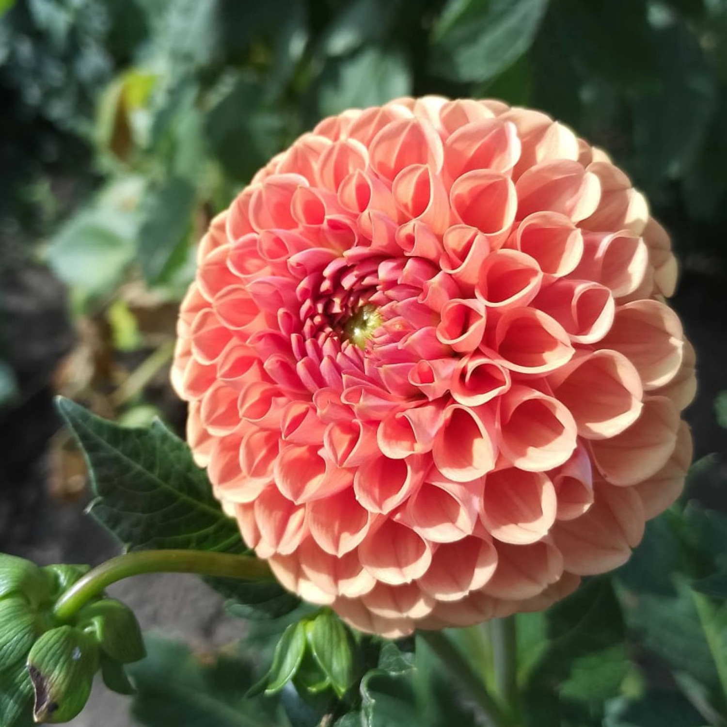 🌺 Жоржина Cornel Brons — це один із найкращих сортів кулястих жоржин, що заворожує своїм теплим та благородним кольором! 🌱 Рослина потужна, висотою 100–110 см, з дуже міцними стеблами, що робить її ідеальним вибором для зрізу. Суцвіття мають форму ідеальної щільної кулі діаметром 8–10 см. Забарвлення неймовірне: насичений теракотовий, мідно-бронзовий або темно-оранжевий колір із шовковистим відливом. Пелюстки акуратно загорнуті, створюючи чітку геометричну структуру. Цвітіння дуже рясне та тривале — з липня до перших заморозків у жовтні.