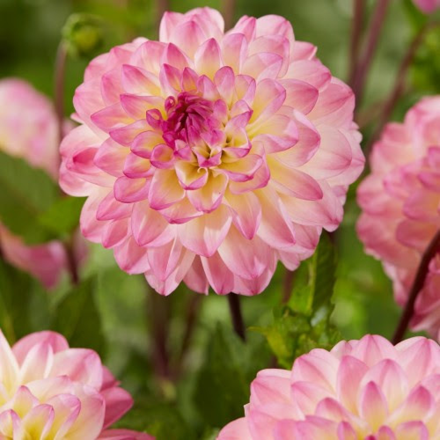 🌺 Жоржина El Paso — це неймовірно приваблива декоративна жоржина, яка відноситься до групи торочкуватих (fimbriated) за своєю витонченою формою. 🌱 Рослина середньоросла, заввишки близько 90–100 см, з міцними стеблами та соковитим зеленим листям. Суцвіття середнього розміру (10–15 см у діаметрі) вражають своєю палітрою: ніжно-рожеві пелюстки з жовтувато-кремовою основою та світлішими кінчиками створюють ефект м’якого сяйва. Особливістю сорту є розсічені кінчики пелюсток, що додає квітам пишності та візуальної легкості. Цвіте рясно з липня до жовтня, прикрашаючи сад до пізньої осені.