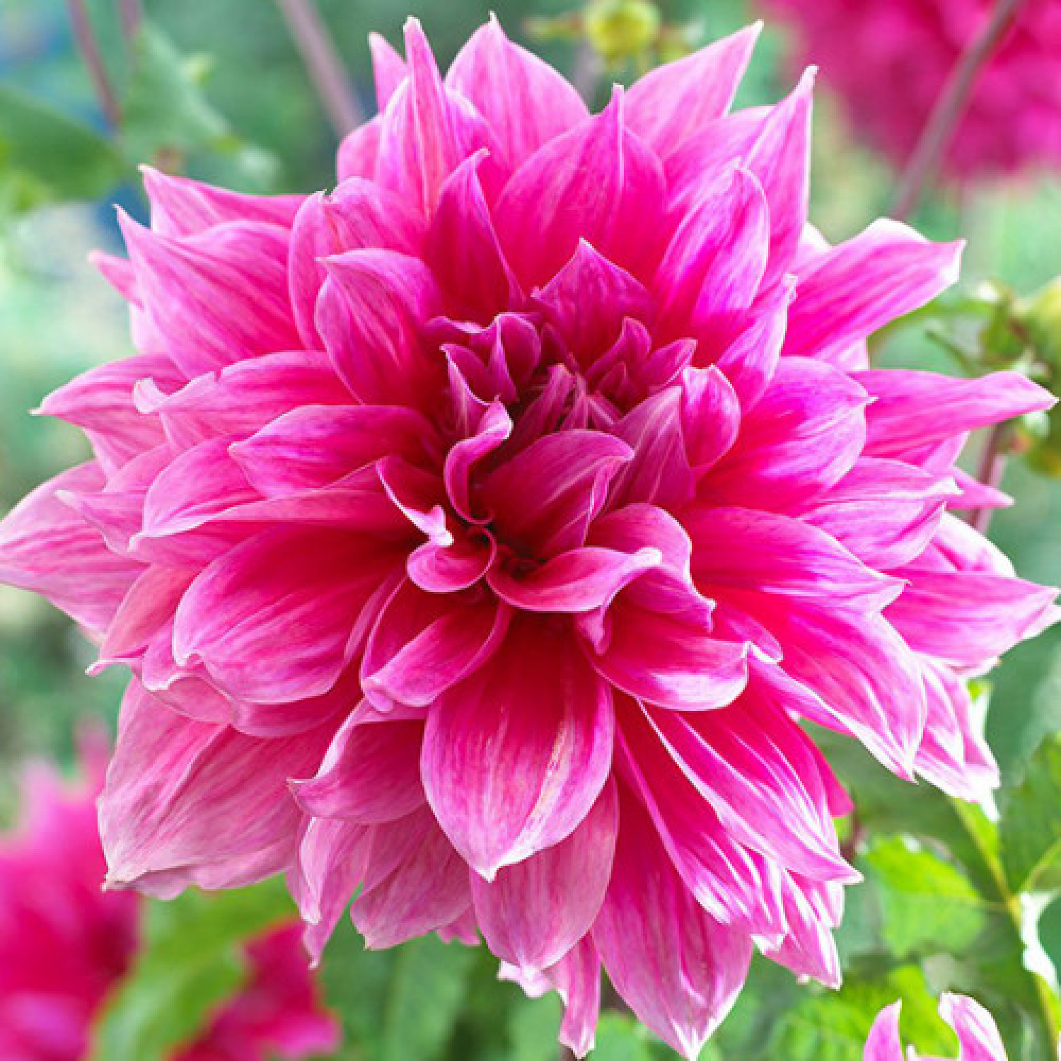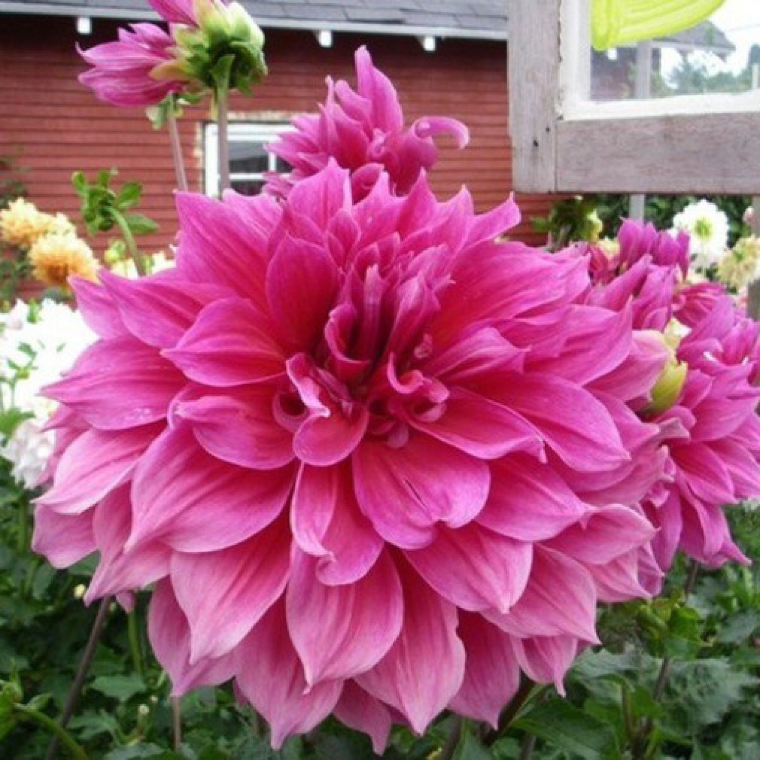 🌺 Жоржина Emory Paul (Еморі Пол) — справжня легенда серед жоржин, що належить до групи декоративних велетнів (Dinnerplate). Цей сорт вважається одним із найбільших у світі! 🌱 Рослина потужна, заввишки 100–120 см, з міцними стеблами, здатними тримати величезні квіти. Суцвіття просто фантастичні — густомахрові, насиченого рожево-пурпурового кольору з легким бузковим відтінком, їхній діаметр може сягати 30–35 см! Кожна така квітка — це справжній шедевр природи, що нагадує величезну яскраву хмару. Цвіте сорт із липня до перших морозів у жовтні. Через гігантський розмір квітів рослина обов'язково потребує опори та захисту від сильних вітрів.