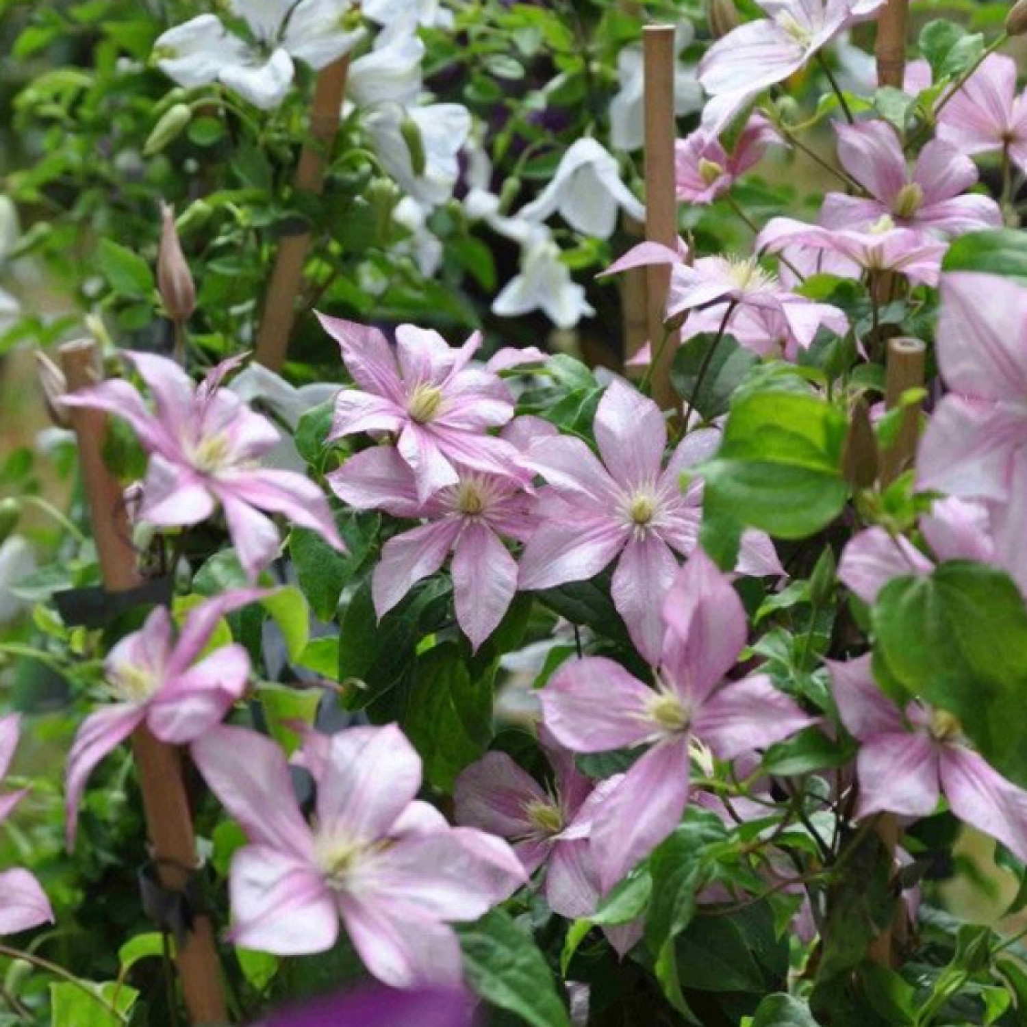 🌸 Клематис Caroline — це чарівний сорт британської селекції, який належить до групи великоквіткових пізніх клематисів. Головною особливістю рослини є її ніжні квіти пастельно-рожевого або блідо-бузкового відтінку, які мають витончену світлу смужку по центру пелюсток. За типом квітка проста, складається з 6 пелюсток із гарно гофрованими краями та контрастними золотистими тичинками, що додають суцвіттям особливої сонячності. 🌱 Кущ має хорошу силу росту і досягає висоти 2–3 метри, створюючи щільну зелену завісу, всіяну численними бутонами.