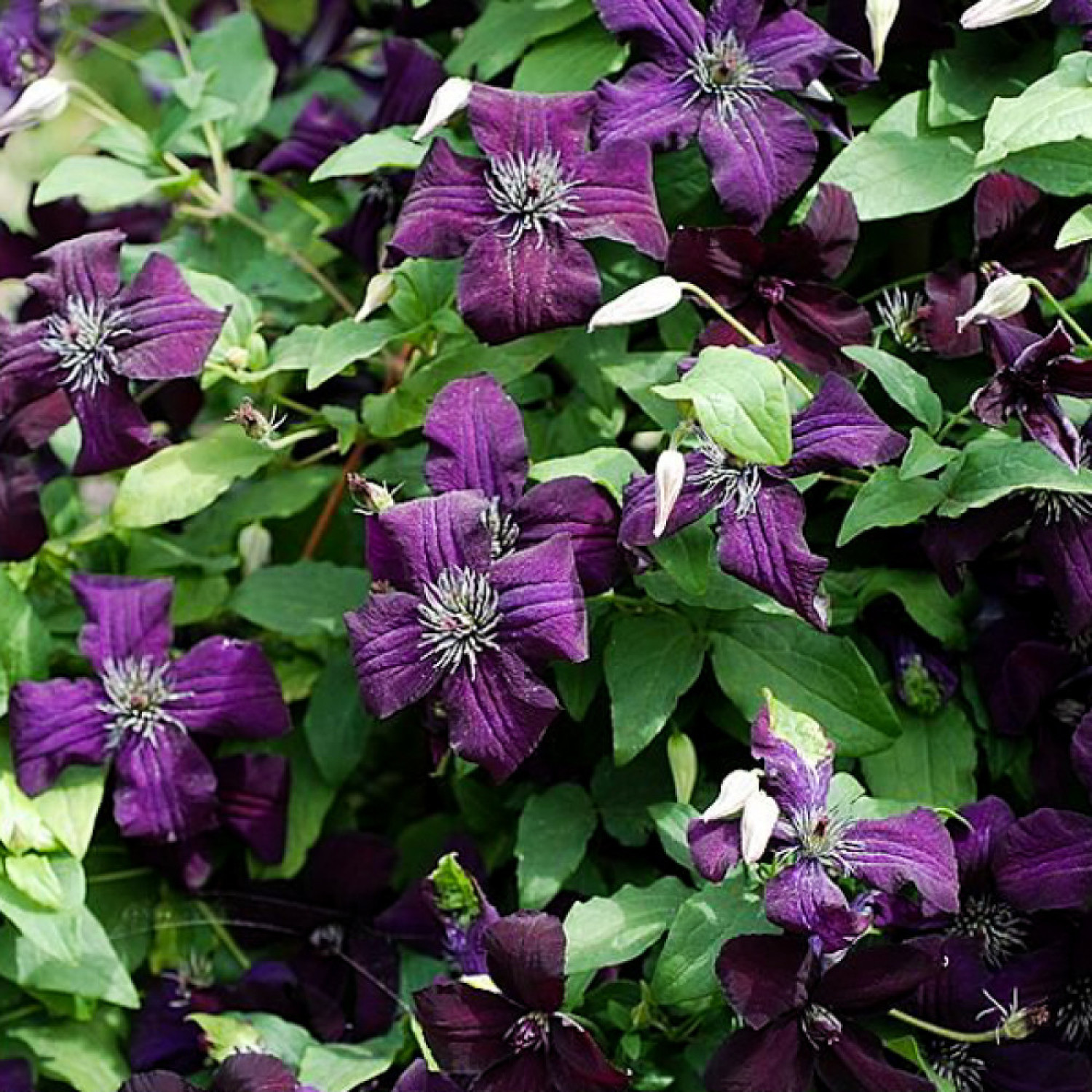 🌱 Період цвітіння дуже тривалий і рясний: з червня по серпень. Розмір квітки в діаметрі становить 6–8 см. Аромат квітів майже невідчутний. 🪴 Сорт віддає перевагу сонячним або злегка затіненим ділянкам, захищеним від сильного вітру. Клематис Dark Eyes належить до 3-ї групи обрізки (сильна), вирізняється винятковою морозостійкістю та стійкістю до грибкових захворювань (зокрема до в'янення), що робить його надійним вибором для будь-якого саду.
