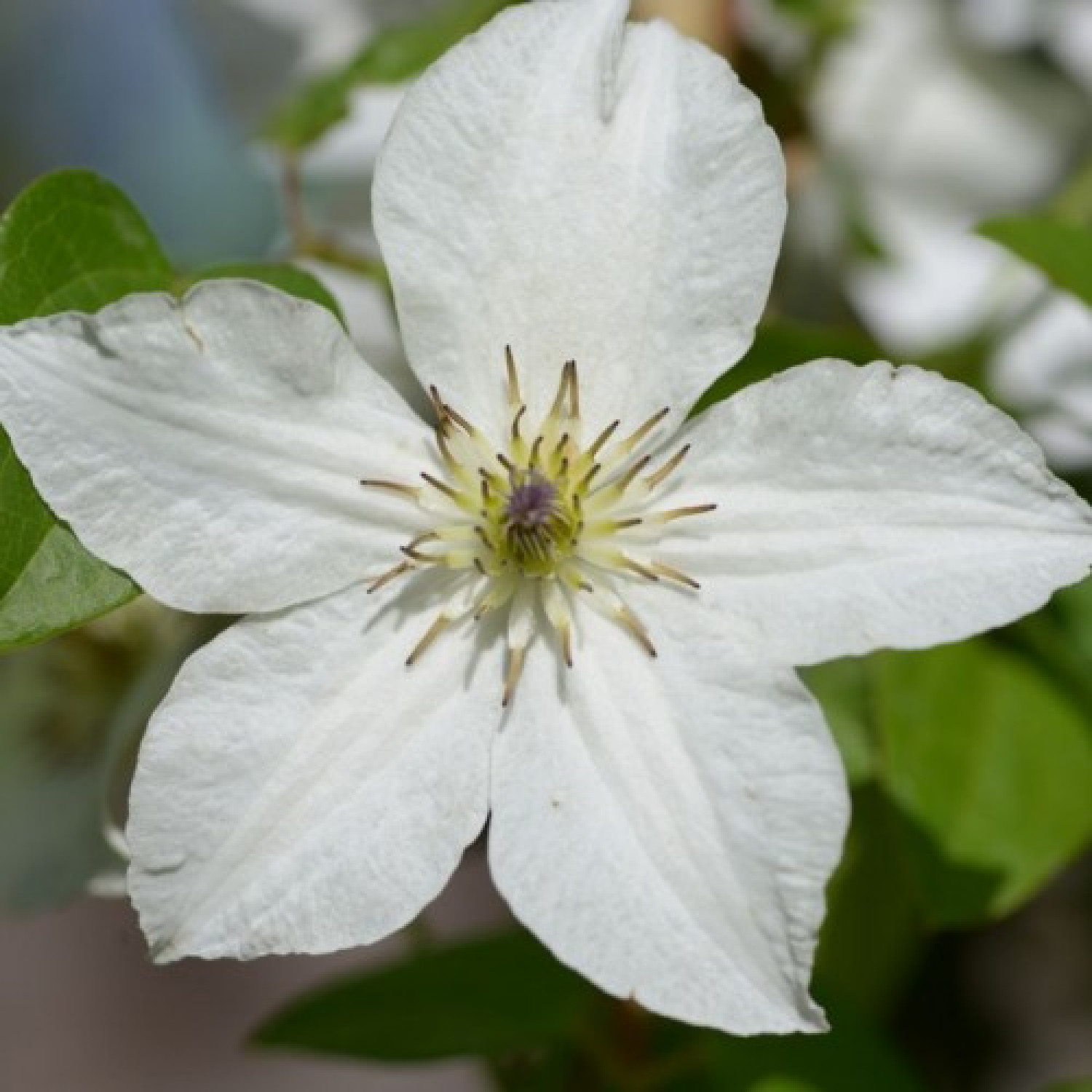 🌸 Клематис Forever Friends — це елегантний сорт голландської селекції, який належить до групи великоквіткових пізніх клематисів. Головною особливістю рослини є її рясне та чисте цвітіння: білосніжні пелюстки створюють яскравий контраст із темно-бордовими, майже чорними тичинками в центрі. За типом квітка проста, складається з 6 пелюсток із злегка хвилястими краями, які на початку розпуску можуть мати ніжний кремовий або зеленуватий відтінок. 🌱 Кущ має велику силу росту, досягаючи висоти 2.5–3 метри, і чудово підходить для вертикального озеленення парканів, альтанок або вирощування між кущами.