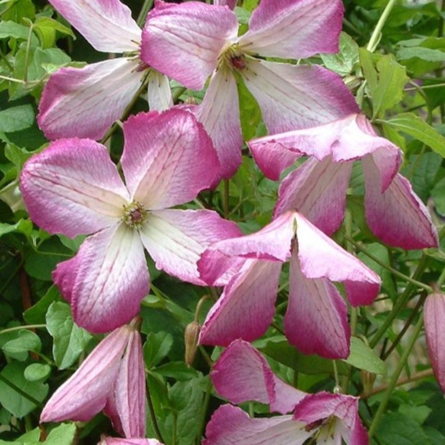🌸 Клематис I Am Lady Q — це надзвичайно витончений сорт голландської селекції, який належить до групи Viticella (фіолетові). Головною особливістю рослини є її ніжні, повітряні квіти, що нагадують порцелянові дзвоники. За типом квітка проста, складається з 4 пелюсток білого або ніжно-кремового кольору з широкою рожево-пурпуровою облямівкою та контрастними темними тичинками. 🌱 Кущ має велику силу росту і досягає висоти 2.5–3 метри, створюючи щільну зелену завісу, всипану сотнями вишуканих квітів.