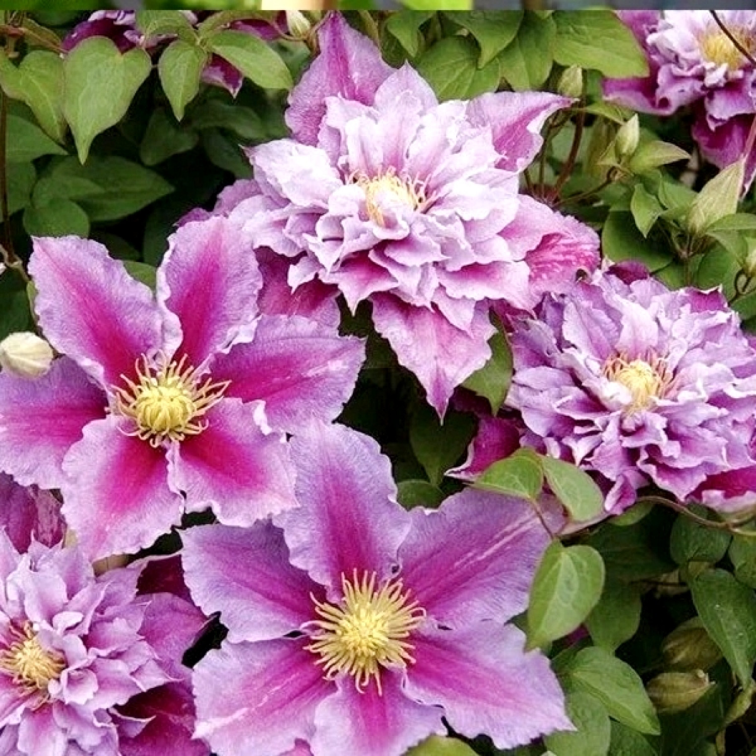 🌸 Клематис Piilu — це популярний компактний сорт естонської селекції, який належить до групи великоквіткових клематисів. Особливістю цього сорту є здатність формувати різні типи квітів: навесні на пагонах минулого року з’являються напівмахрові квіти, а влітку — прості. Квіти ніжно-рожевого кольору з яскравішою рожево-пурпурною смужкою по центру пелюсток виглядають дуже романтично й декоративно. Квітка із злегка хвилястими краями та прикрашена жовтими тичинками. 🌱 Кущ має помірну силу росту та досягає висоти 1,5–2 метри, що робить його ідеальним для невеликих садів, балконів і контейнерного вирощування.