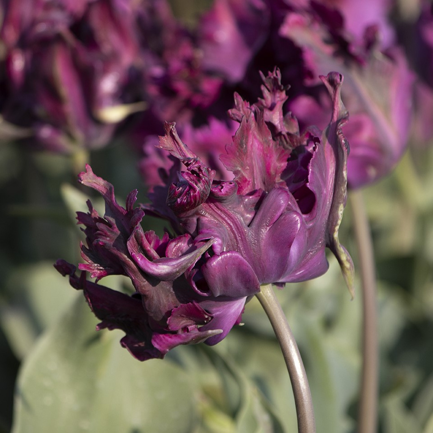 Тюльпан Parrot Negrita - створений для любителів яскравих та незвичних тюльпанів! Форма квітів - це справжній витвір мистецтва! Пелюстки злегка зазубрені і скуйовджені, як пір'я папуг. Забарвлення додає ще більше ексклюзивності цьому сорту - королівський фіолетовий з тонкою зеленою смугою. Інтенсивність кольору іноді змінюється в залежності від клімату і навіть від одного сезону до іншого.